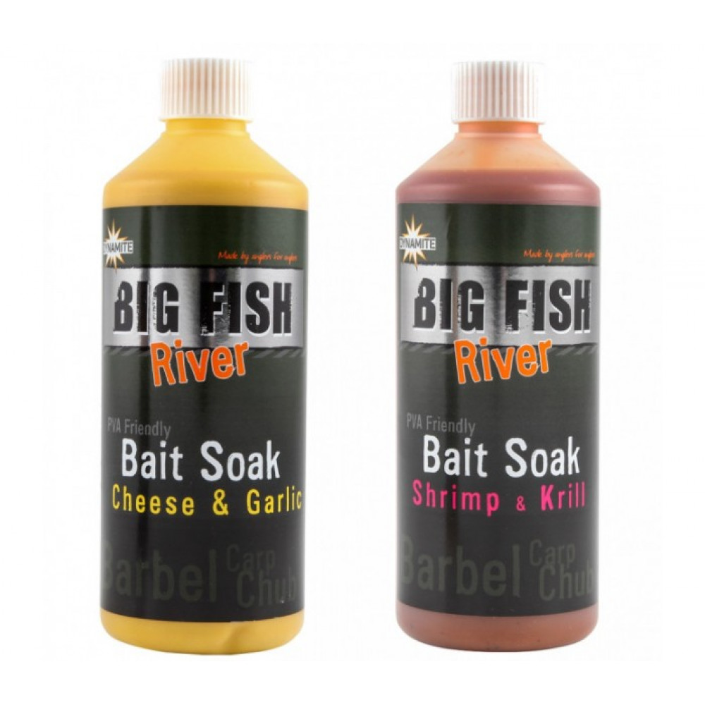 Dynamite Big Fish River Shrimp and Krill Soak е ароматизиран така, че да съвпада по аромат и да допълва останлите продукти от гамата Big Fish River Shrimp & Krill на Dynamite Baits.