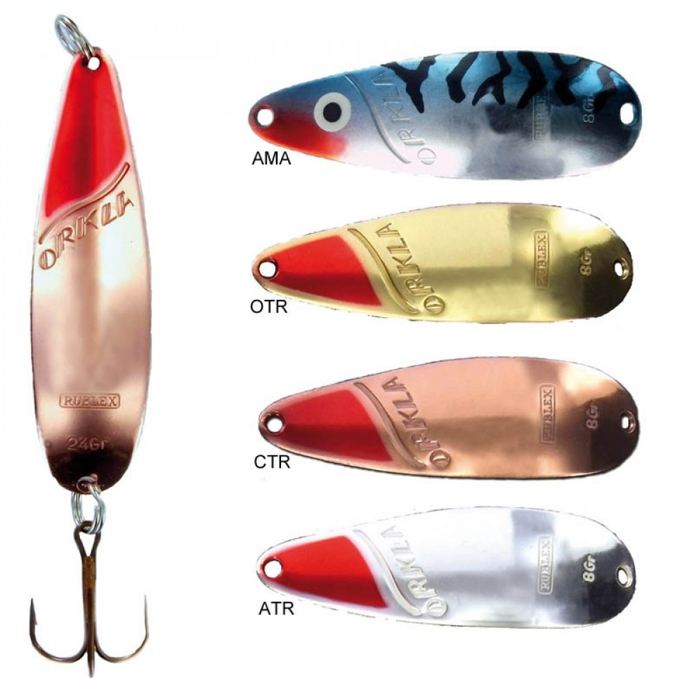 Класически модел клатушка за риболов на различни видове сладководни хищници. Тялото на блесната има S-образна форма, която имитира естествените атрактивни движения на стръвта във водата. Тази специфична извивка, според мнението на много опитни въдичари, е сигурна гаранция за успех при риболов на едри хищни екземпляри. Всички компоненти на блесната са висококачествени, осигуряващи максимална устойчивост при многократна употреба. Клатушката е направена от висококачествена шведска стомана Sandwick и има специално покритие, осигуряващо перфектен блясък. Rublex Orkla успешно се прилага при всякакви риболовни ситуации и е отлична изкуствена примамка за различни хищни риби.