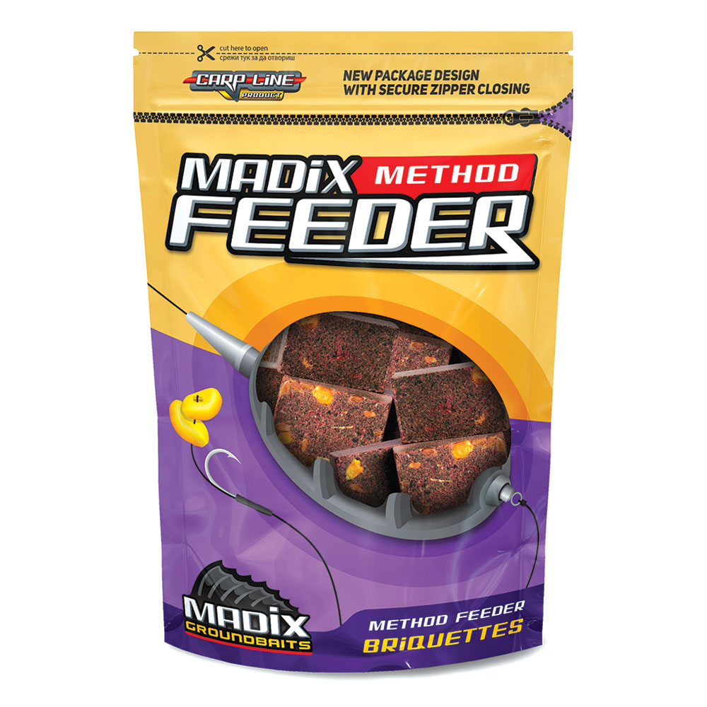 Високопротеинова брикетирана подхранка. Подхранва се с не повече от 5-6 брикета. Разпадането им във водата става бавно, така подхранката привлича рибата, а не я храни. Брикетите са подходящи и за метод фидер риболов, посредством специално разработената хранилка.