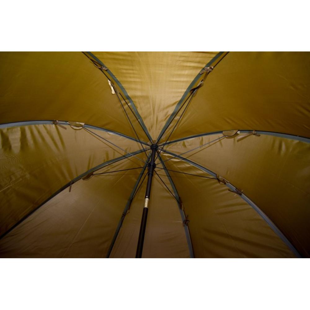 Разполага с олекотени аеронови рейки и допълнително подлепени шевове. Главата е с механизъм за фиксиране под ъгъл. Предпазва от дъжд и слънце – идеално решение за всеки. Доставя се в калъф с презрамки за улеснено транспортиране. В тъмно зелен цвят.