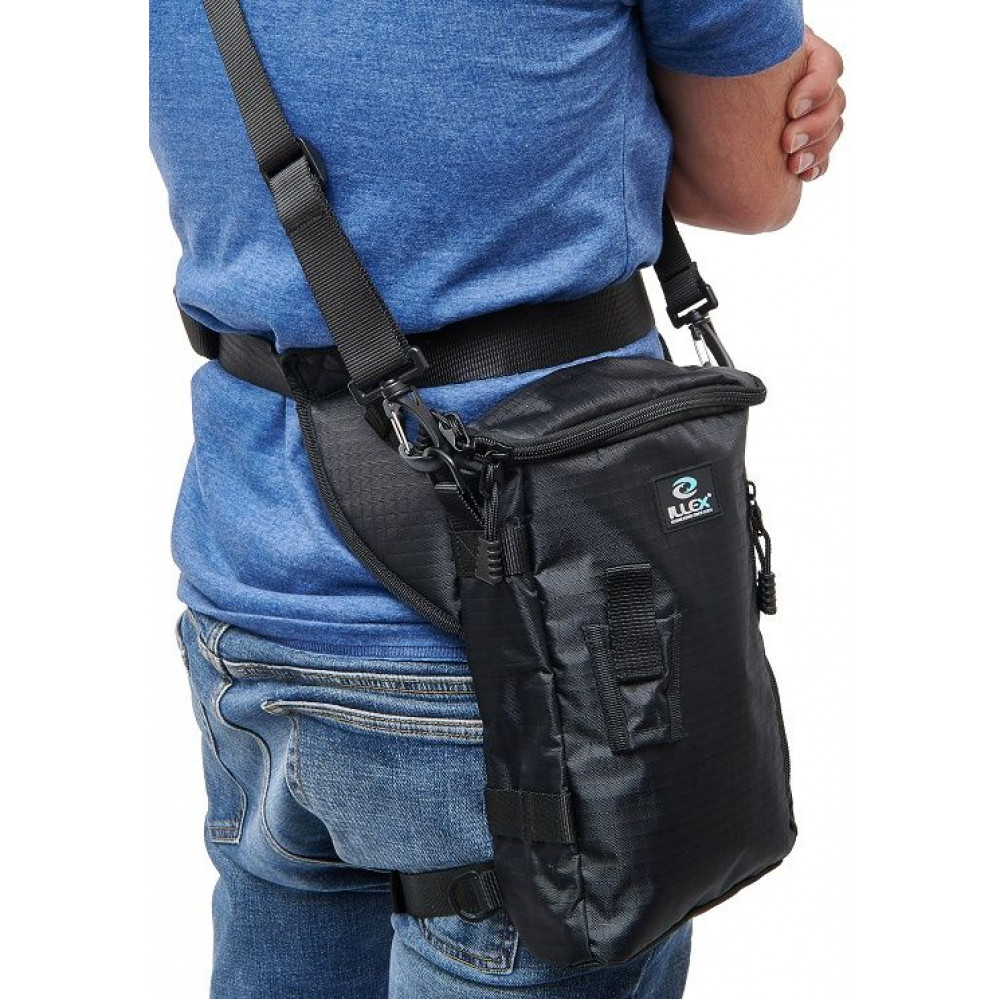Регулируема презрамка за кръста и крака. Основно отделение с цип. По-малък външен джоб с цип и отделение за клещи. Изработена от издръжлив 600D материал с водоустойчиво покритие.