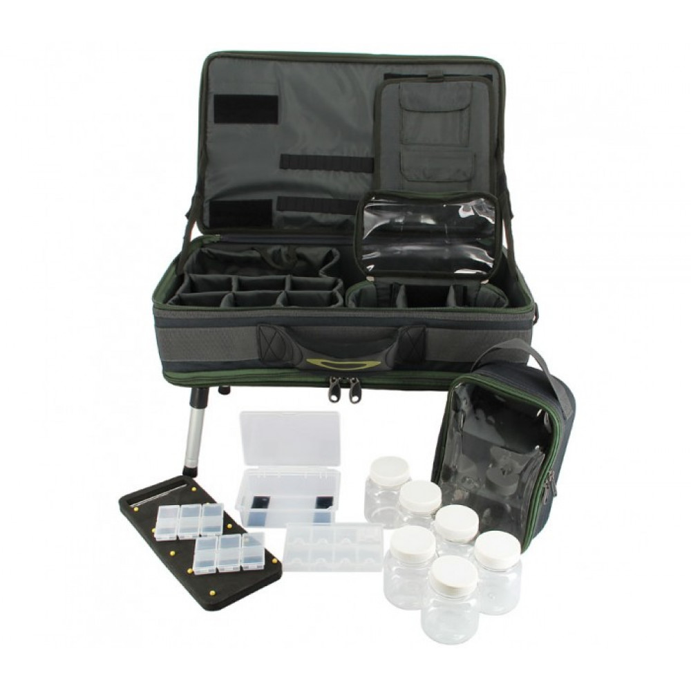 Чанта за аксесоари NGT Carp Bivvy Table System е цялостно решение за маса, вградена в чанта за аксесоарите ви. С чантата можете да организирате, подредите и сортирате всички захранки и инструменти за шарански риболов. Всичко това е събрано в удобна чанта, разполагаща с външен джоб и презрамка за допълнително удобство.