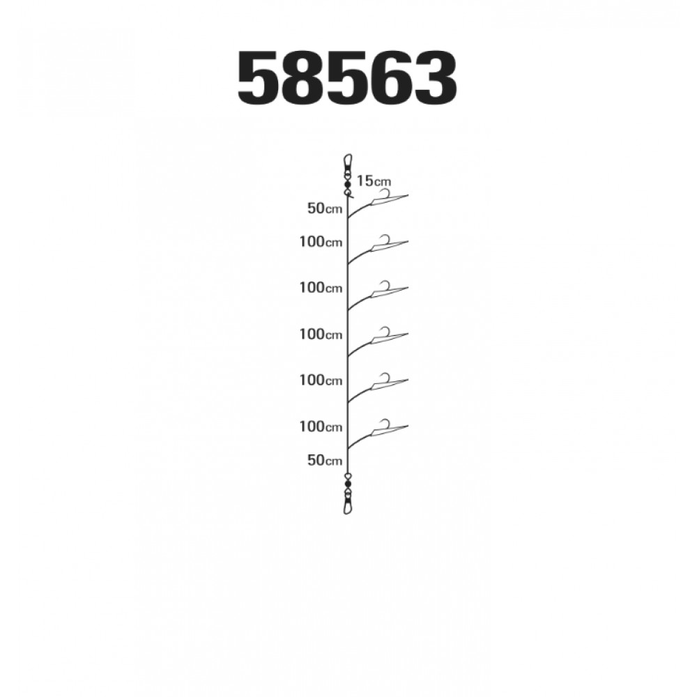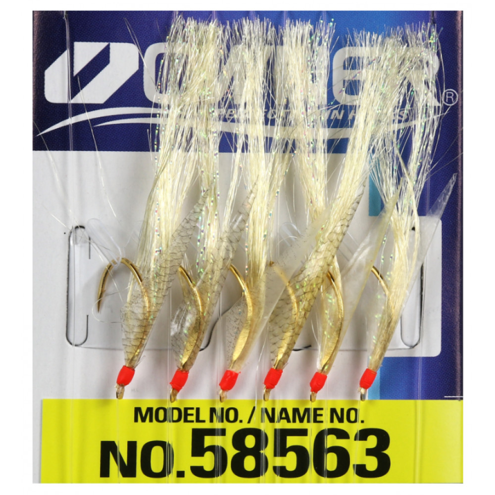 Чепаре за морски риболов с 6 бр. куки. В този модел е направена комбинация от рибена кожа (fish skin), материал наподобяващ пера (ламе) и искрящо червена намотка, за придържане и по-голяма атракция.