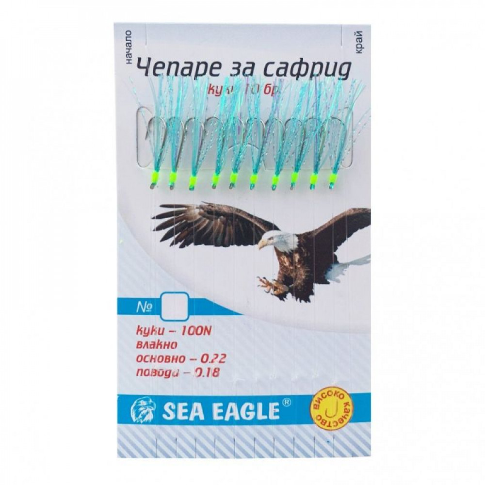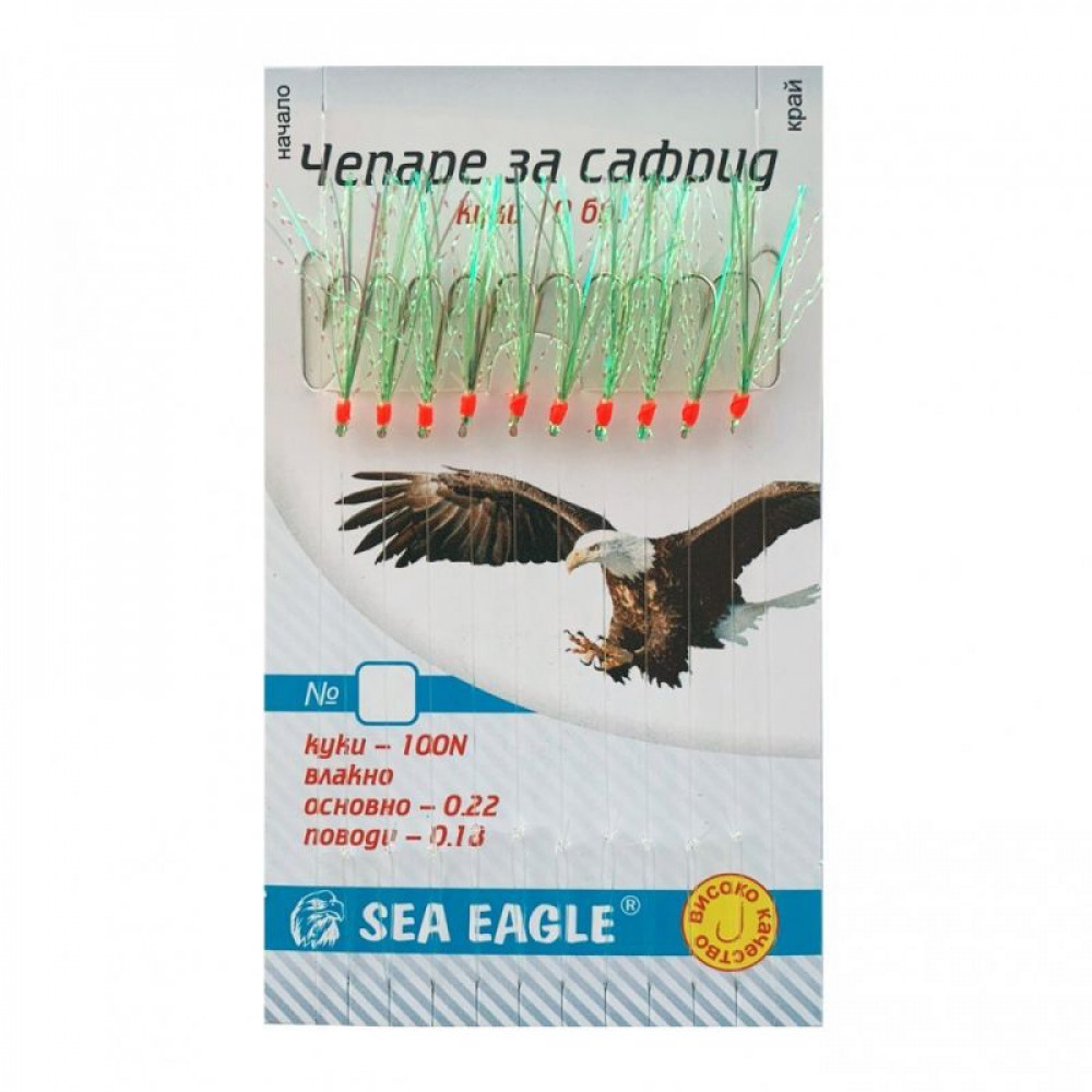 Класическо чепаре за сафрид Sea Eagle - резултат от дългогодишен опит в риболова в Черно море. Изработено с 10 куки, произведени в Корея, отличаващи се с висока устойчивост на корозия и здравина.