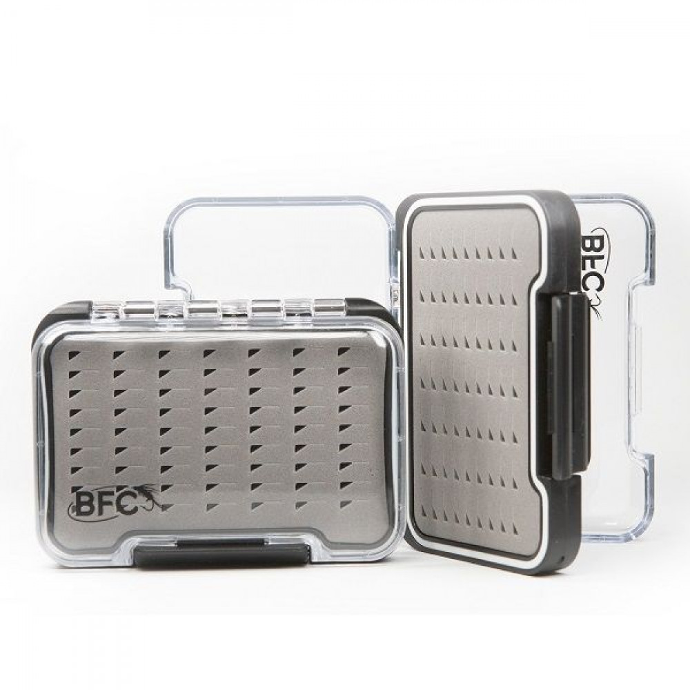 Double Sided Waterproof Fly Box на BFC е кутия от твърда, олекотена пластмаса с прозрачни капаци, с гумени уплътнения по ръбовете на затваряне за защита от навлизане на вода в кутията.