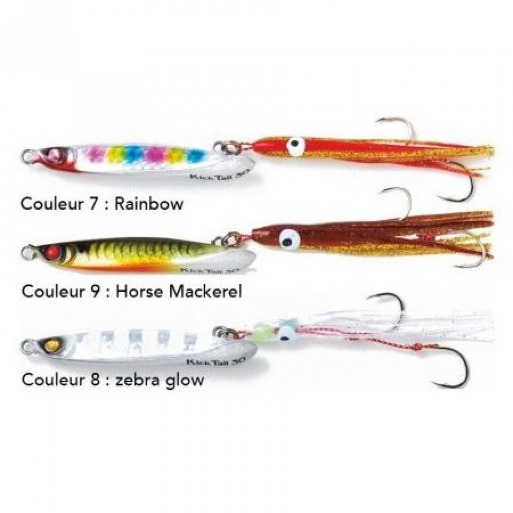 Kick Tail серията е проектирана за риболов от брега. Когато Kick Tail падне във водата потъва с невероятна игра. Hayabusa Kick Tail FS-413 са може би първият и единствен джиг, който може да се използва от брега, с оборудване за риболов от брега. Kick Tail има способността за далечно замятане. Oтлична примамка за повърхностен риболов на маятико , риба тон, както и за риболов в по-дълбокото на фагри.