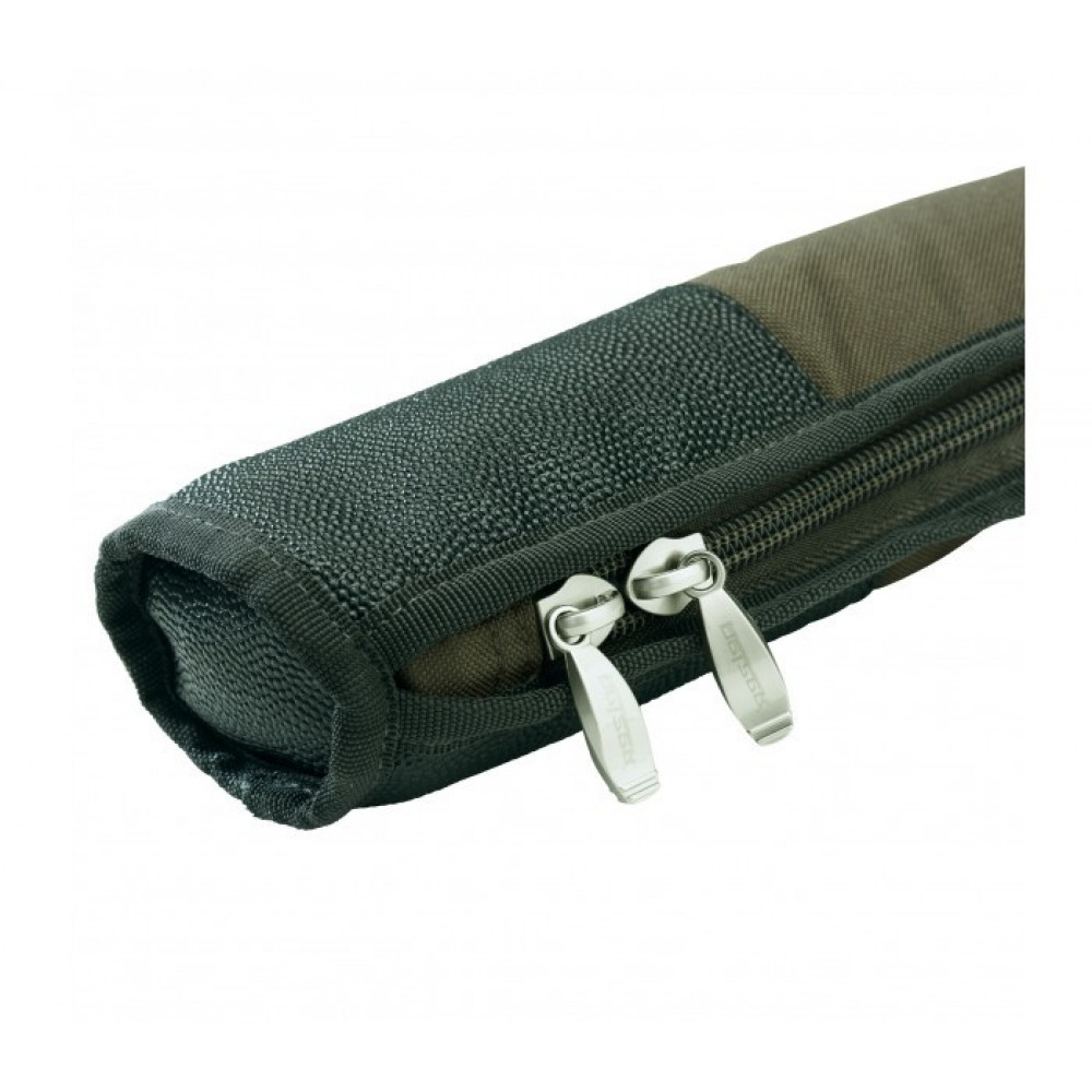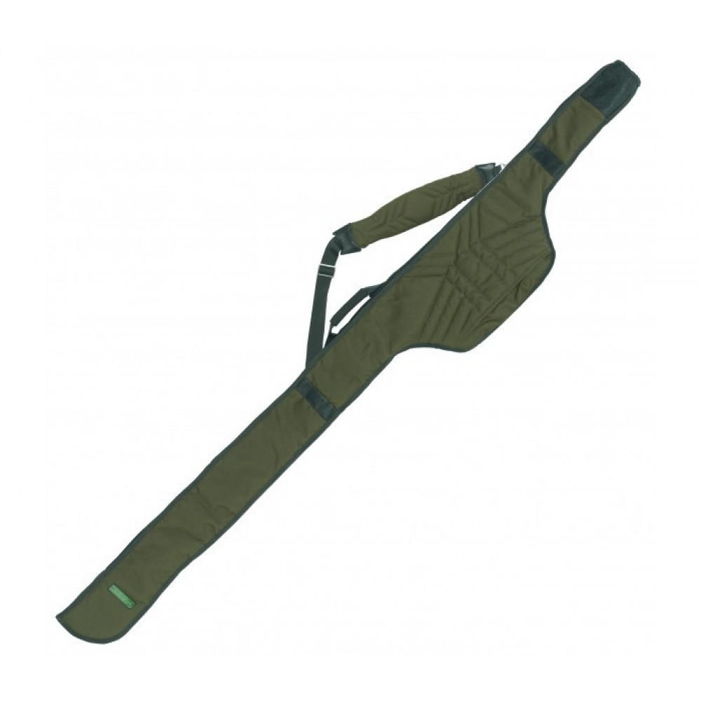 Великолепен калъф, впечатляващ от пръв поглед с високото качество на изработка. Произведен от плътен и много надежден плат, допълнително подсилен с кожа в долния край. Смело може да се твърди, че това е най-добрият калъф на пазара за момента. Предназначен за една въдица с работна дължина 12 или 13ft и конструкция от две части, окомплектована с макара. Допълнителната подплата между външния слой и хастара предпазва ефективно въдицата и макарата. Предлага се в 2 дължини.