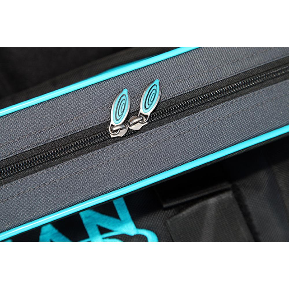 Здрава, полу твърда материя. В Аква, Черно и Сиво. Удобна дръжка за транспортиране. Разполага и с вътрешен джоб за дребни акесосари (шпули и т.н.) Неопренови лепенки за обезопасяване на въдиците.