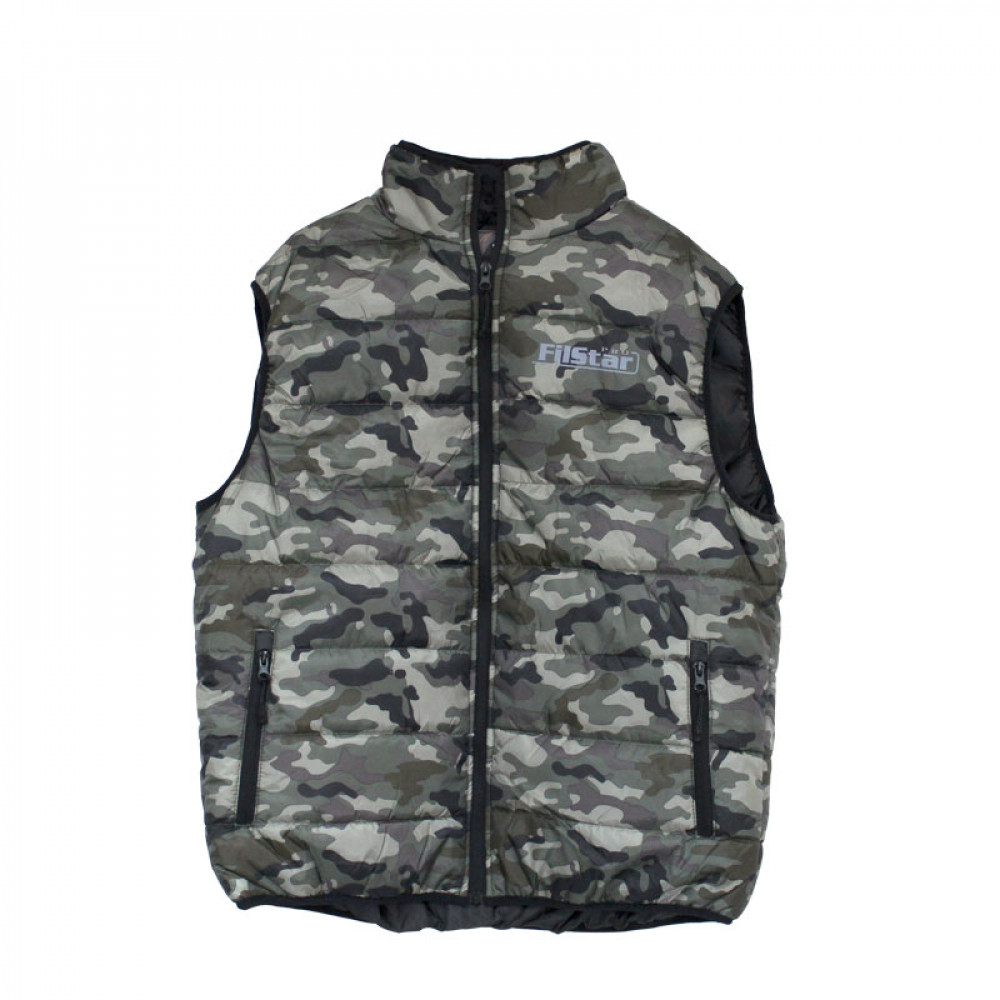 Мъжки ватиран елек с модерна кройка, подходящ за риболов и други дейности на открито. Елекът е изработен от изключително лека материя и е с камуфлажен десен.
