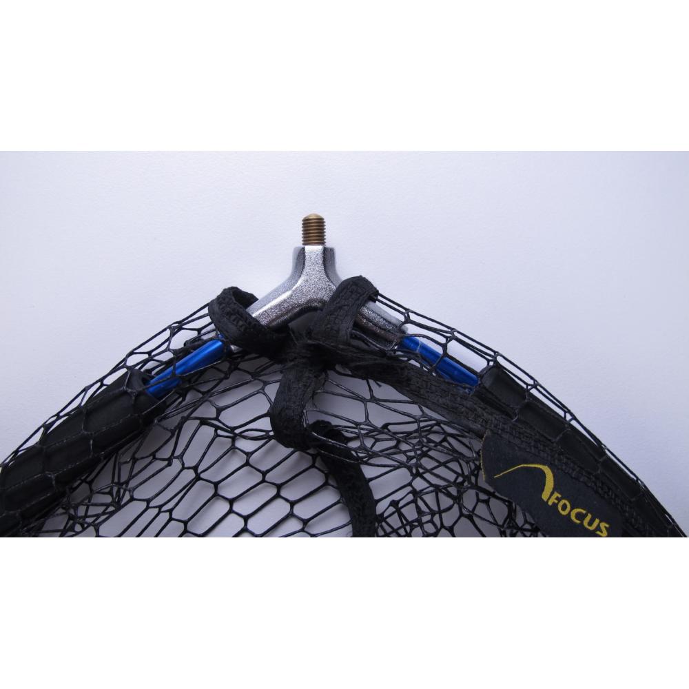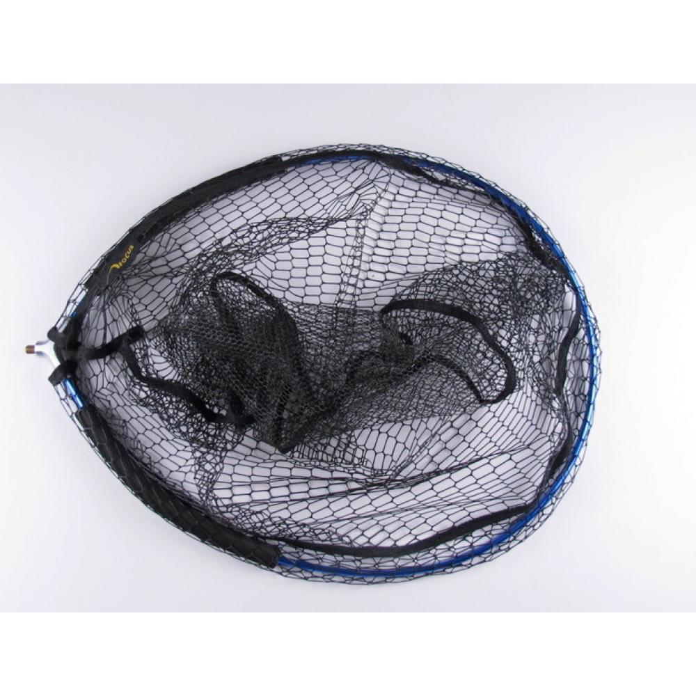 Обръчът е изработен от качествен метал, мрежата е от PVC материал. Окото на мрежата не позволява перките на рибите и куката да се закачат. Главата е снабдена с два поплавъка от двете страни, които много спомагат при самото кепване на рибата.