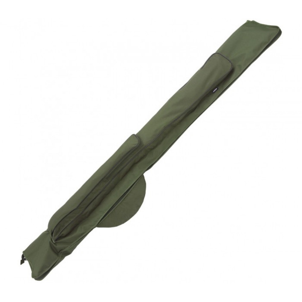 Висок клас калъф, разработен за предпазване и транспортиране на шаранджийски въдици на две секции. Калъфът може да побере общо 6 броя въдици, от които три с макари и три без макари. Калъфът е изработен от здрав и много надежден 600 D полиестер с непромокаем PVC слой отдолу. Уширението за макарите е допълнително подплатено, така че предпазва напълно макарите от удари и започва на около 50 см от долния край на калъфа и е с височина около 35 см, като е оптимално позиционирано спрямо стандартната дължина на дръжката на повечето въдици за риболов на шаран. По цялата дължина е обшит със здрава лента, която при носене разпределя натоварването. Снабден е с два външни джоба с широчина 14 см и дължина, респективно 140 см и 75 см. Джобовете са многофункционални и позволяват съхраняване и транспортиране на колчета, бъзбарове, чадър, кеп и други аксесоари от екипировката. Затварят се със самостоятелни ципове. Калъфът е оборудван с изключително надеждна дръжка и подплатен ремък за носене през рамо. От вътрешната страна са предвидени джобове, фиксиращи долния край на въдиците, а отгоре се прихващат с велкро лепенки. В горната част, над макарите, е предвидена преграда, разделяща двата комплекта въдици и предпазваща ги от ожулване едни в други. Надеждният цип придава завършеност на този великолепен калъф!