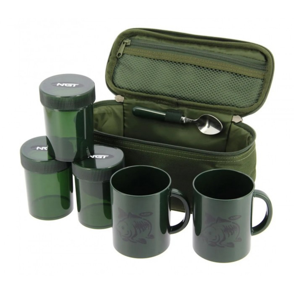 Къмпинг комплект прибори за хранене NGT Brew Kit представлява прекрасен комплект прибори за хранене, подходящ за къмпинг и риболов. Изключително подходящо допълнение към екипировката за по-продължителни излети за риболов на шаран.Отличава се с висококачествена изработка, здрави ципове и уникален дизайн.