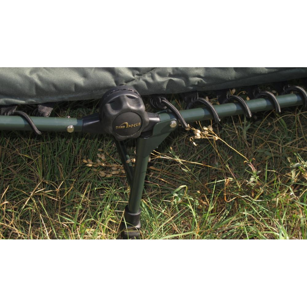 Carp Focus - Luxe Bed Large с шест крака, изключителен дизайн и комфорт,създаден за да пасне идеално на тялото. Наличие на добре подплатена облегалка за глава, осигуряваща перфектен комфорт. Оборудвано е с шест телескопични крака, които се регулират независимо един от друг. Допълнителна подложка от двете страни осигуряващи оптимално удобство. Долният край е от PVC материал, много лесен за почистване след риболовните излети. Оборудвано е с шест телескопични крака и изцяло нова система за разтягане. Carp Focus - Luxe Bed Large ви гарантира доста голямо удобство по време на вашия риболовен излет.