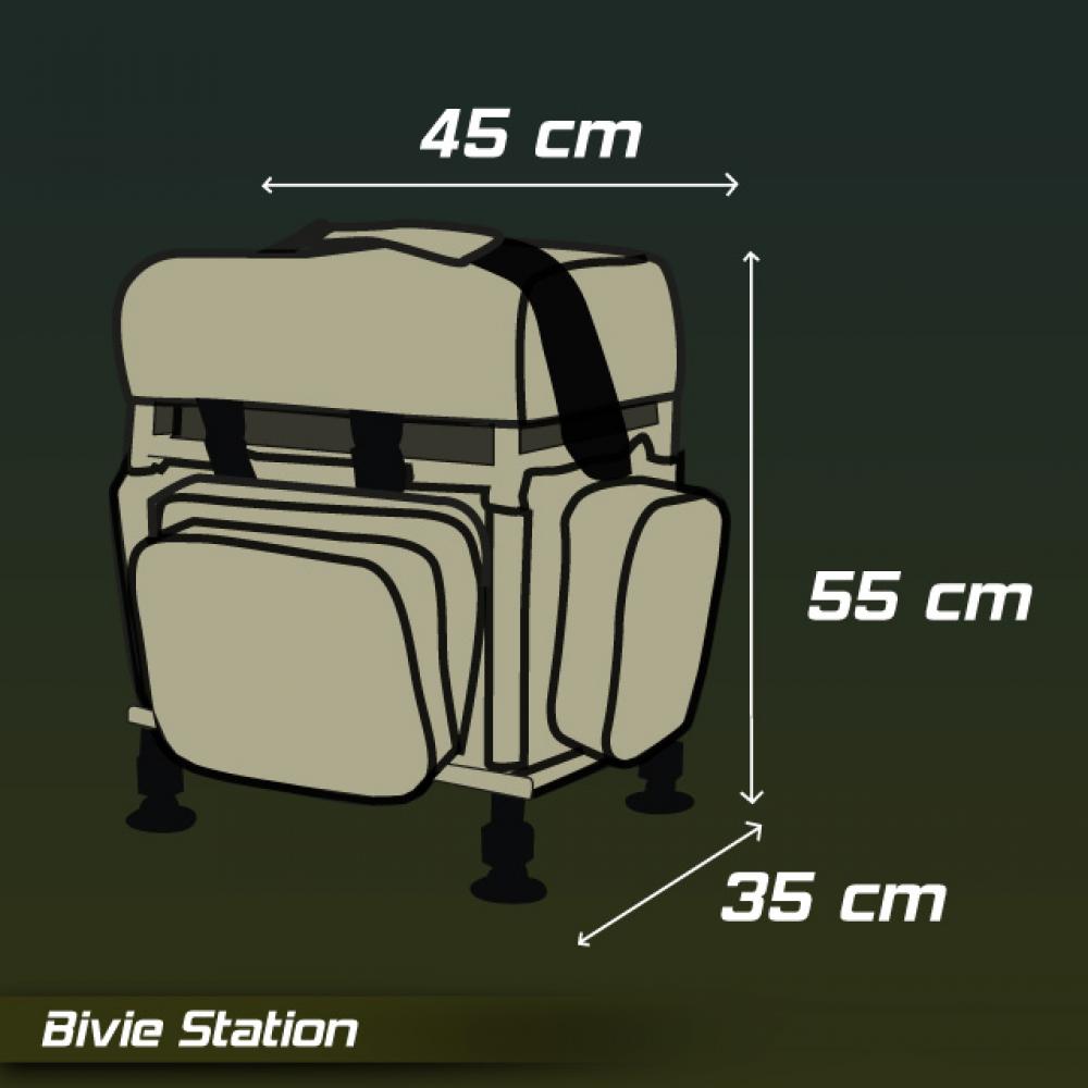 Биви станция Starbaits, лека и здрава, проектирана с 4 регулируеми крака позволяващи използването на всякакви терени. Комплекта включва отделяща се маса също с регулируеми крачета, джобове за чанта за олово,за хладилна чанта,за чанта с прибори и други. Практичен и лек стол , включващ много допълнителни екстри.