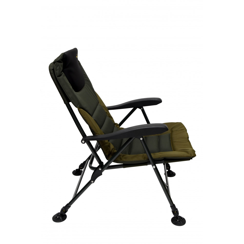 Лек, удобен, и с възможност за бързо регулиране на позицията на облегалката посредством повдигане на подлакътниците. Всеки от четирите телескопични крака се регулира самостоятелно във височина, в зависимост от наклона на терена.