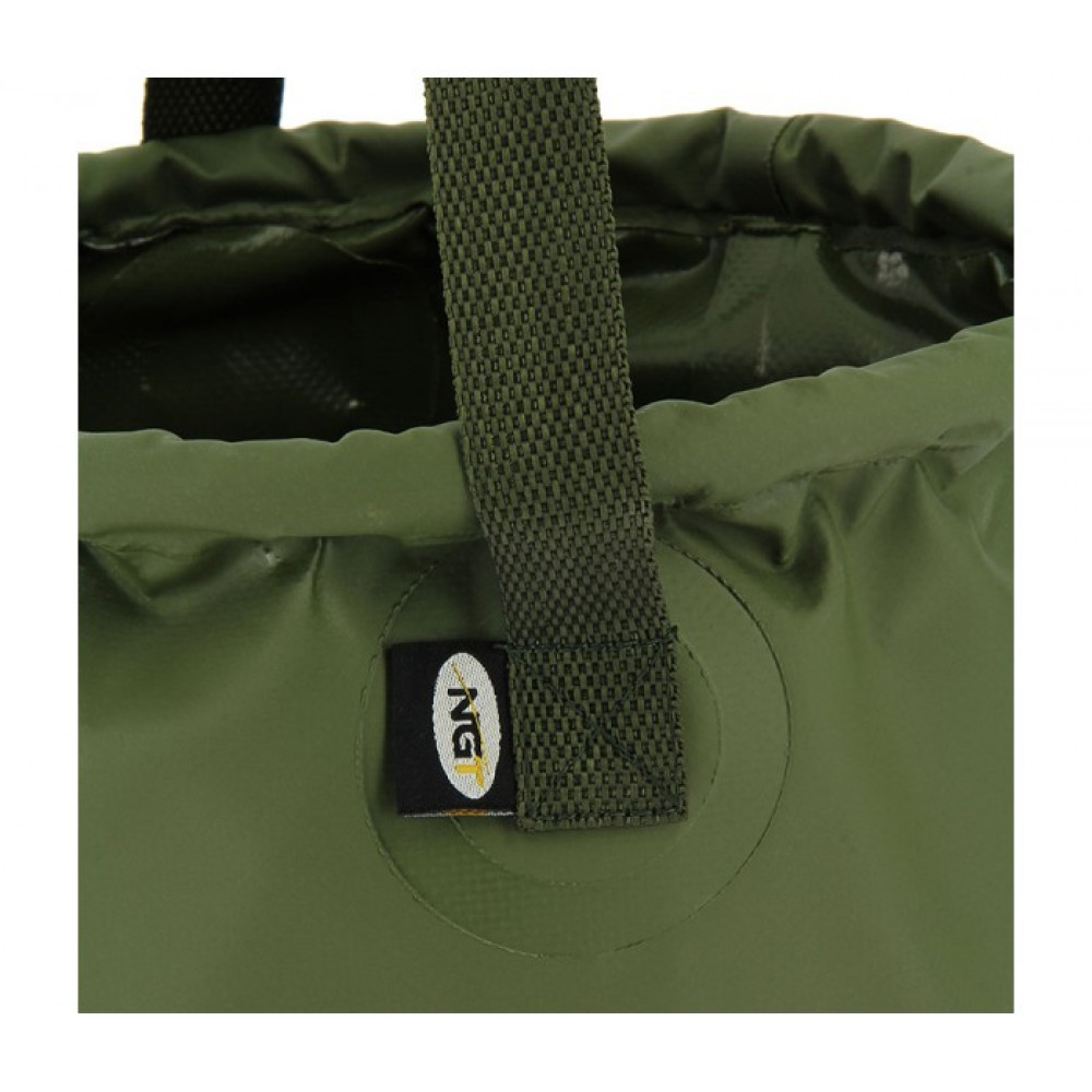 NGT разработиха собствена PVC кофа за вода. Тази 100% водоустойчива кофа е идеална за бързо придвижване на водата и изсипване върху рибата, докато е на дюшека или в люлката.