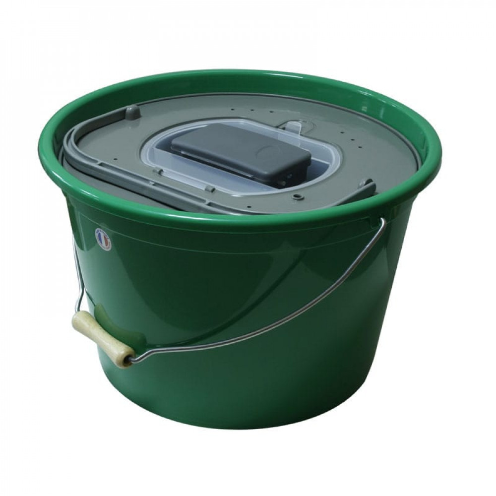 Здрава двойна кофа с метална дръжка. Вътрешната кофа е с процепи за оттичане на водата, капак за бърз достъп и пластмасова дръжка. Външната кофа е плътна, и може да бъде използвана за различни цели. Комплектът включва и помпа, която да поддържа нивото на кислорода в кофата. Помпата работи на батерии ( не са включени в комплекта ).