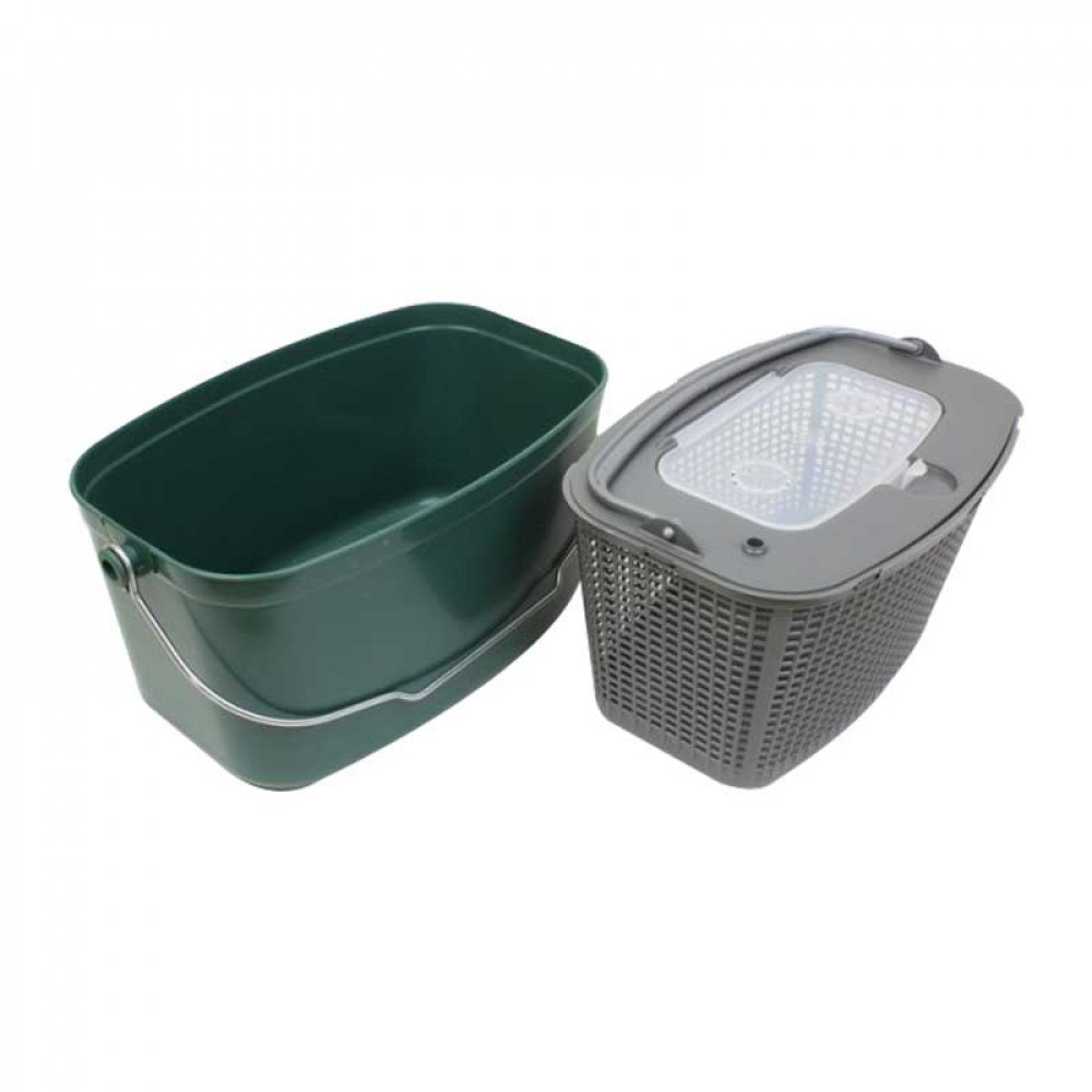 Кофа от две части - състои се от плътна кофа с метална дръжка и кофа на решетка с дръжка и капак за бърз достъп.