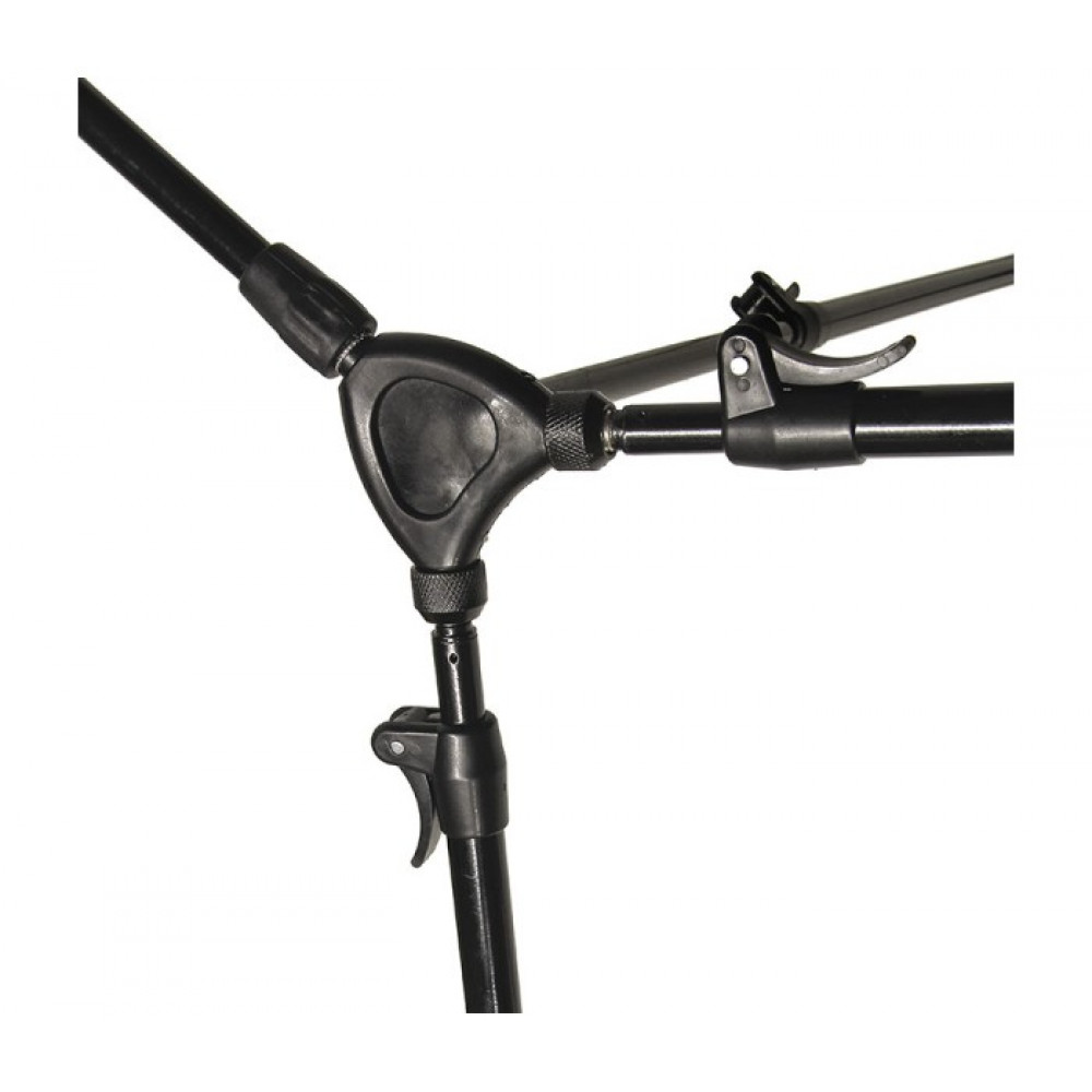 Стойка за риболов с три индикатора, три държачи за въдици, 2 бъзбара, представена в луксозна чанта за носене. Стойката има регулируеми крака и удължаващо се тяло.