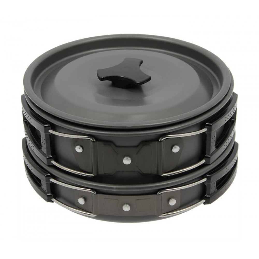 Комплект тенджери и тигани за готвене, набор от NGT, който съдържа правилния тиган и чайник, за да се подготви добра храна или една чаша кафе на брега. Изработени от здрав алуминий, с покритие анти-стик и сгъваеми дръжки. С NGT съдове за готвене получавате тиган, тенджера и чайник, в които могат да бъдат приготвени богата гама от ястия, дори на водоема. Също така може да си приготвяте винаги топли напитки. За да се предотврати изгаряне са прикрепени сгъваеми дръжки, които са изключително удобни. Малкият и практичен комплект за готвене се доставя в транспортна чантичка. Размери: