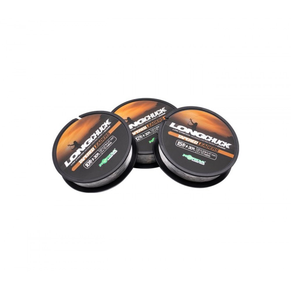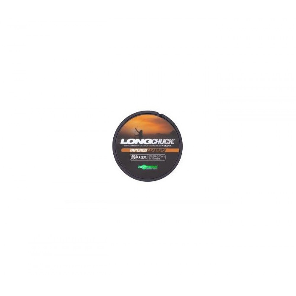 Този шок лидер са проектирани специално за риболов на дълги разстояния, за да ви помогнат да постигнете максимално разстояние без риск от скъсване и са перфектни, когато се използват заедно с основната линия Long Chuck. Всеки водач е с дължина 10 м и разполага с 8 м от линията на разкъсване от 30 фунта/0,47 мм, за да абсорбира силата на замятането, както и да дава известна защита при игра на риба поради нейната устойчивост на износване - идеален при риболов върху чакълести и мидени дъна - и след това последните 2 м се стесняват от 0,47 мм (30 фунта) до 0,33мм