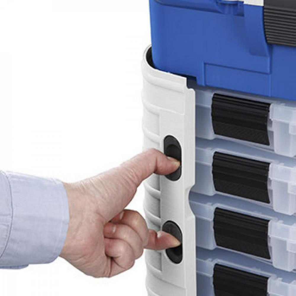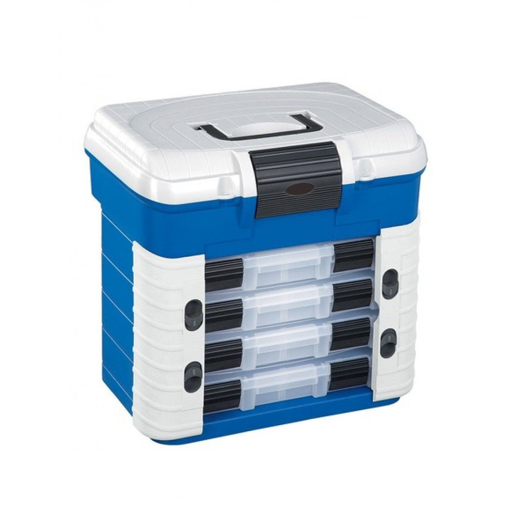 Куфар-стол за риболов Plastica Panaro 501, със седалка за сядане, за изкуствени примамки и аксесоари.Куфарът е снабден с четири кутии с регулируеми отделения.Под удобния капак (ергономична седалка) се намира просторно отделение за багаж и кутия за воблери. Всичко това е направено с цел вашия риболов да се превърне в удоволствие и лесен достъп до всички помещения на куфара. Иновативният дизайн на куфара-стол е така разработен, че във фронталната част разполага с четири кутии, прибиращи се в сърцевината на куфара като чекмеджета. Допълнителните кутии към куфара са с по три разделения. Възможностите за различно оразмеряване спомагат за пълна свобода на аранжиране на различни клетки според наличните инструменти и аксесоари.