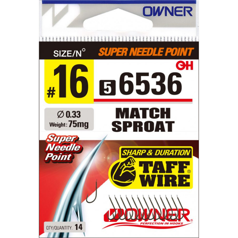 Match Sproat Brown е кука в кафяв цвят. Използваният за направата им материал TAFF-WIRE е върхово постижение в производството на риболовни куки - притежава много висока здравина при нисък диаметър на тялото. Отличават се от до сега познатите модели куки по това, че самото острие на куката е изработено от по-твърда стомана намаляваща до минимум бързото затъпяване и удължава нейния живот. Острие със Super Needle Point връх.