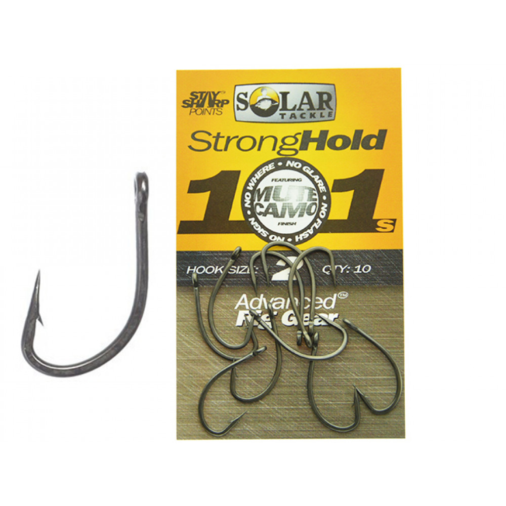 Eдна от най-здравите и използвани куки в момента на пазара. Mногократно тествани от екипа на Solar преди пускането им на пазара. Снабдена с Mute Camo накрайник, помага за запазване на върха остър максимално дълго време.Широка извивка, прав връх и право ухо.