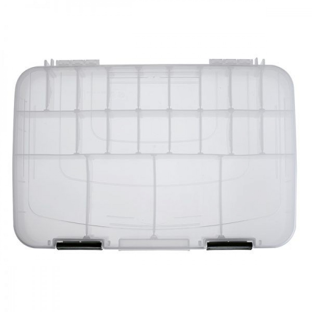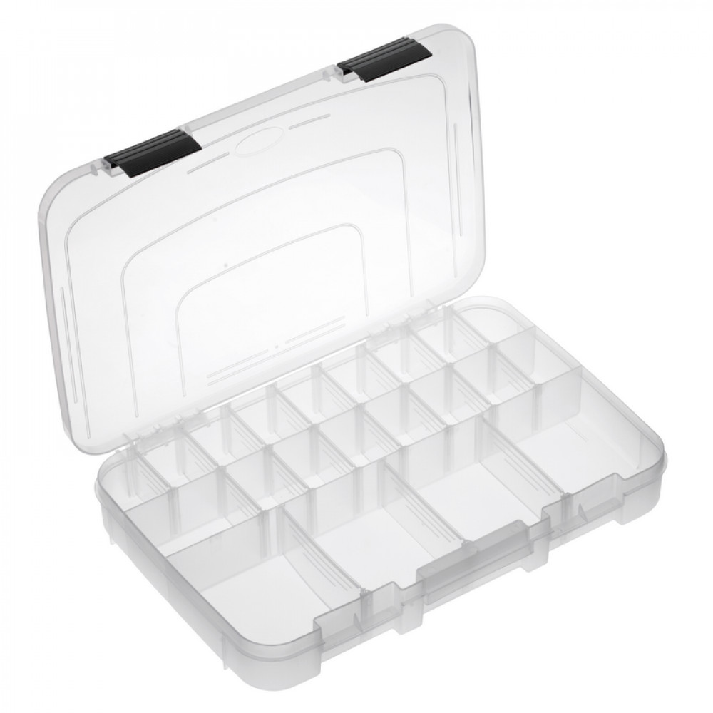Прозрачен цвят с черни клипсове за заключване. Подвижни отделения.