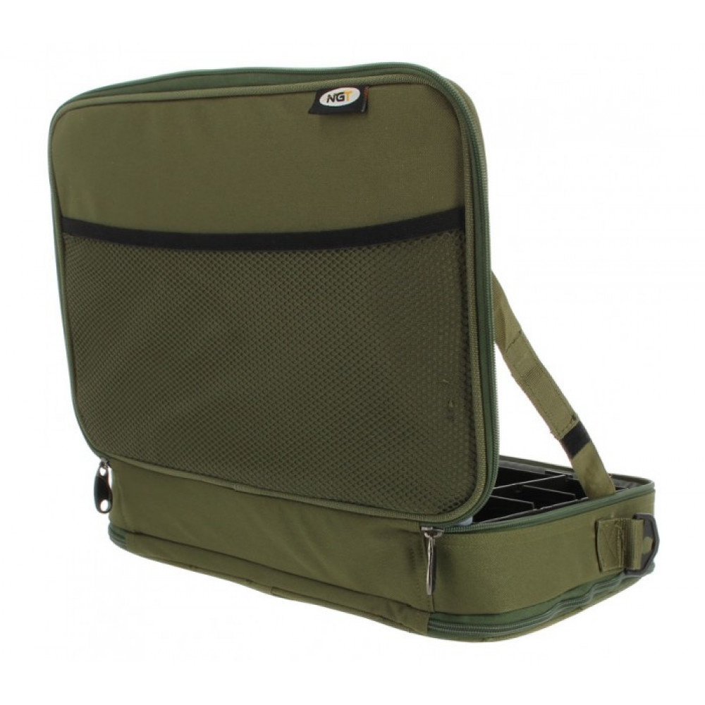 Кутия за риболов с чанта, която е перфектна, за да бъде всичко необходимо под ръка. Кутия NGT Box Case Tackle Bag се предлага в комплект с пластмасова кутия за аксесоари с различни отделения.