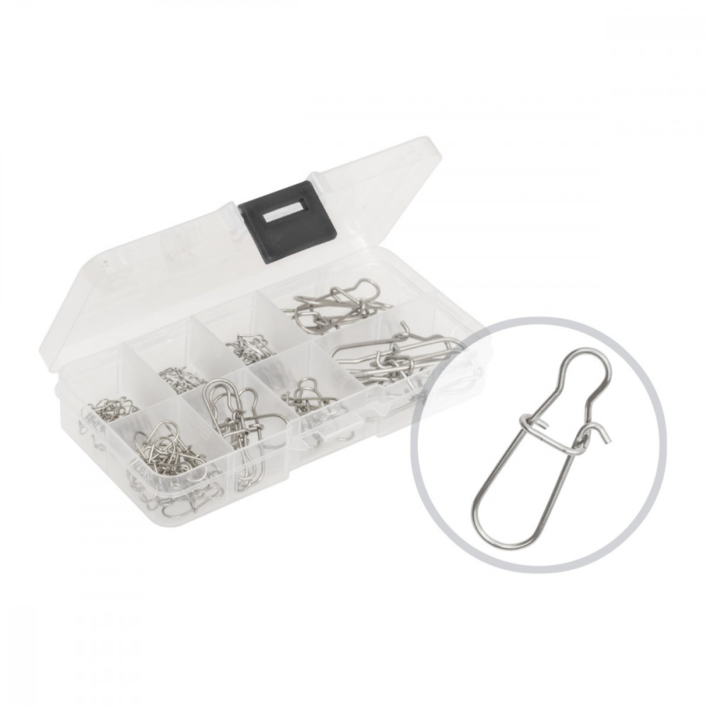 Карабинки в различни размери и цвят Nickel, които се предлагат в удобна кутия с осем отделения за различните размери. Смяната на карабинката става бързо и безпроблемно. Специално създадени за любителите на спининг риболов.