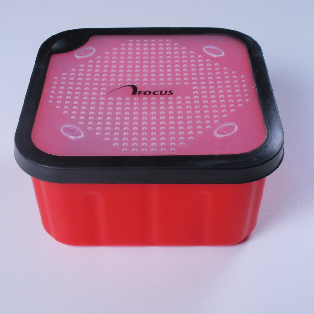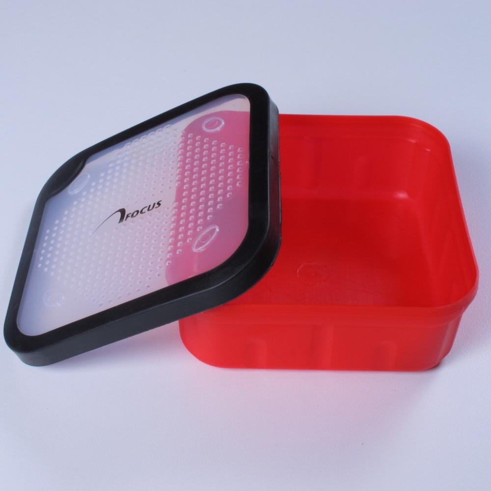 Квадратна кутия за стръв изработена е от пластмаса. Капака е изработен от силикон, перфориран, което осигурява достатъчно свеж въздух на вашата стръв.