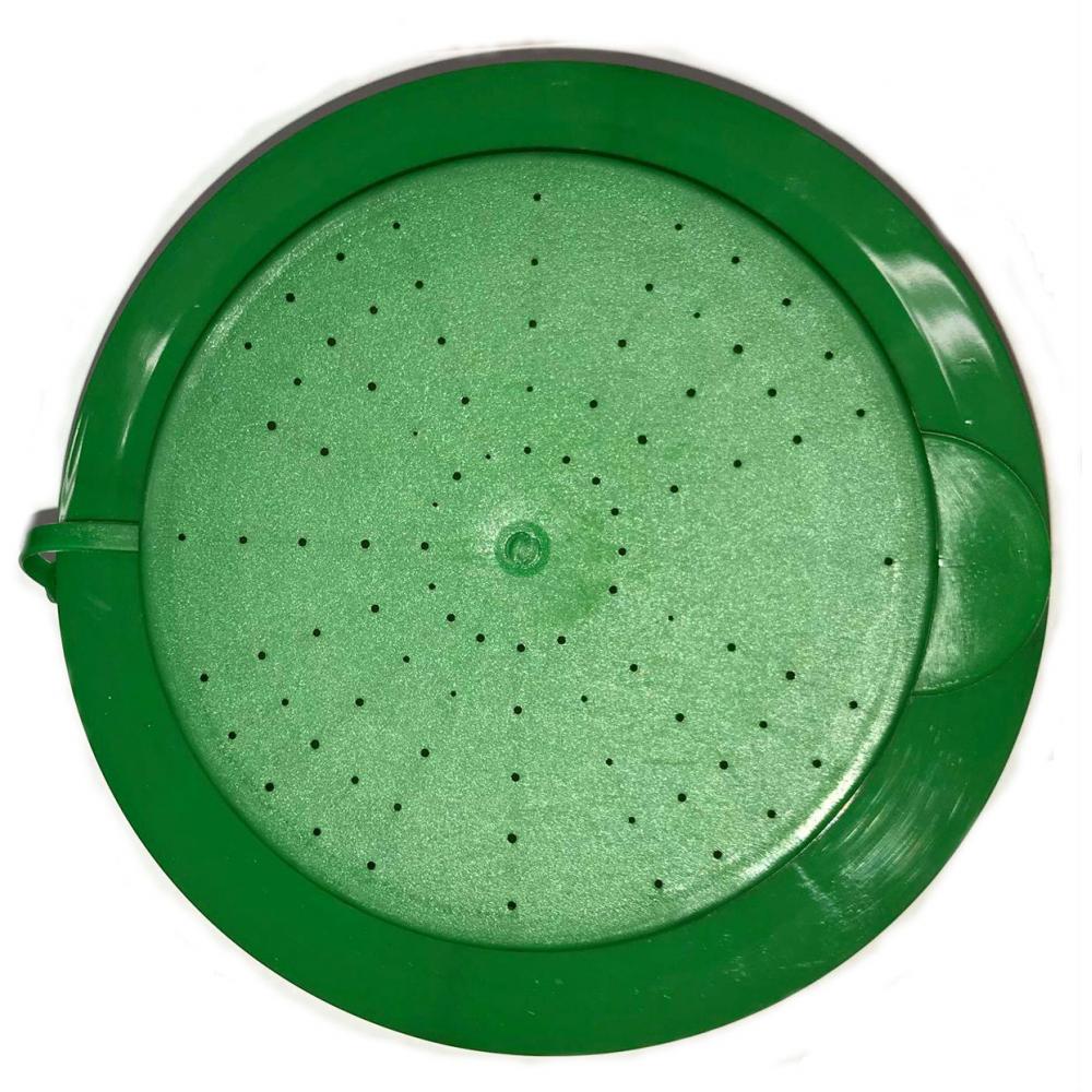 Кръгла кутия за стръв изработена от пластмаса. Капака е перфориран, което осигурява достатъчно въздух на вашата стръв. Жълт цвят със зелен капак.