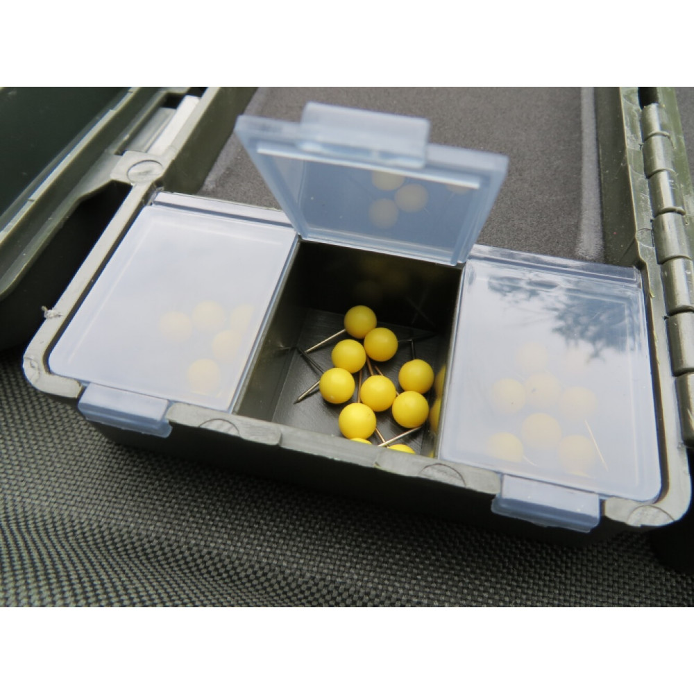 Луксозна и голяма чанта за шаранджийски специалисти с много включени аксесоари. Използваният при изработката материал B-POL600D гарантира издръжливост, лесна поддръжка и е 100% водоустойчив. Специално оформеният твърд капак може да се използва като маса за аксесоари. Краката на тази маса са интегрирани в ъглите на чантата. Добре подплатена презрамка за рамо осигурява удобно транспортиране. Този сак включва двоен класьор за готови монтажи, една голяма кутия и три по-малки кутии за аксесоари. Тези артикули идват от новата гама аксесоари Mivardi Carp. Стандартно са включени осем висококачествени контейнера за потапяне на стръв с подобрено запечатване.