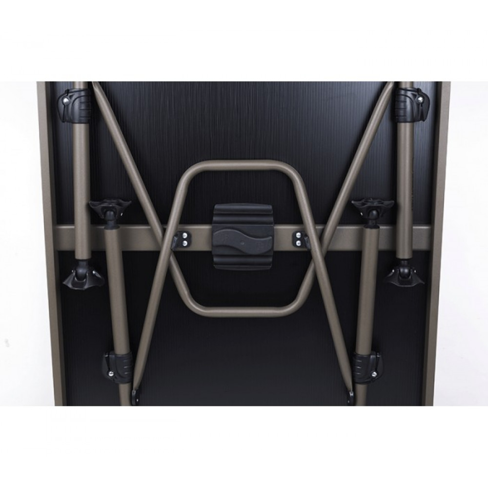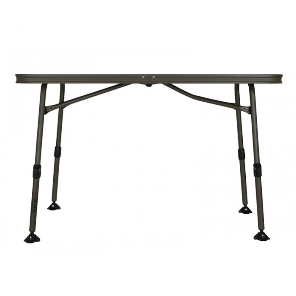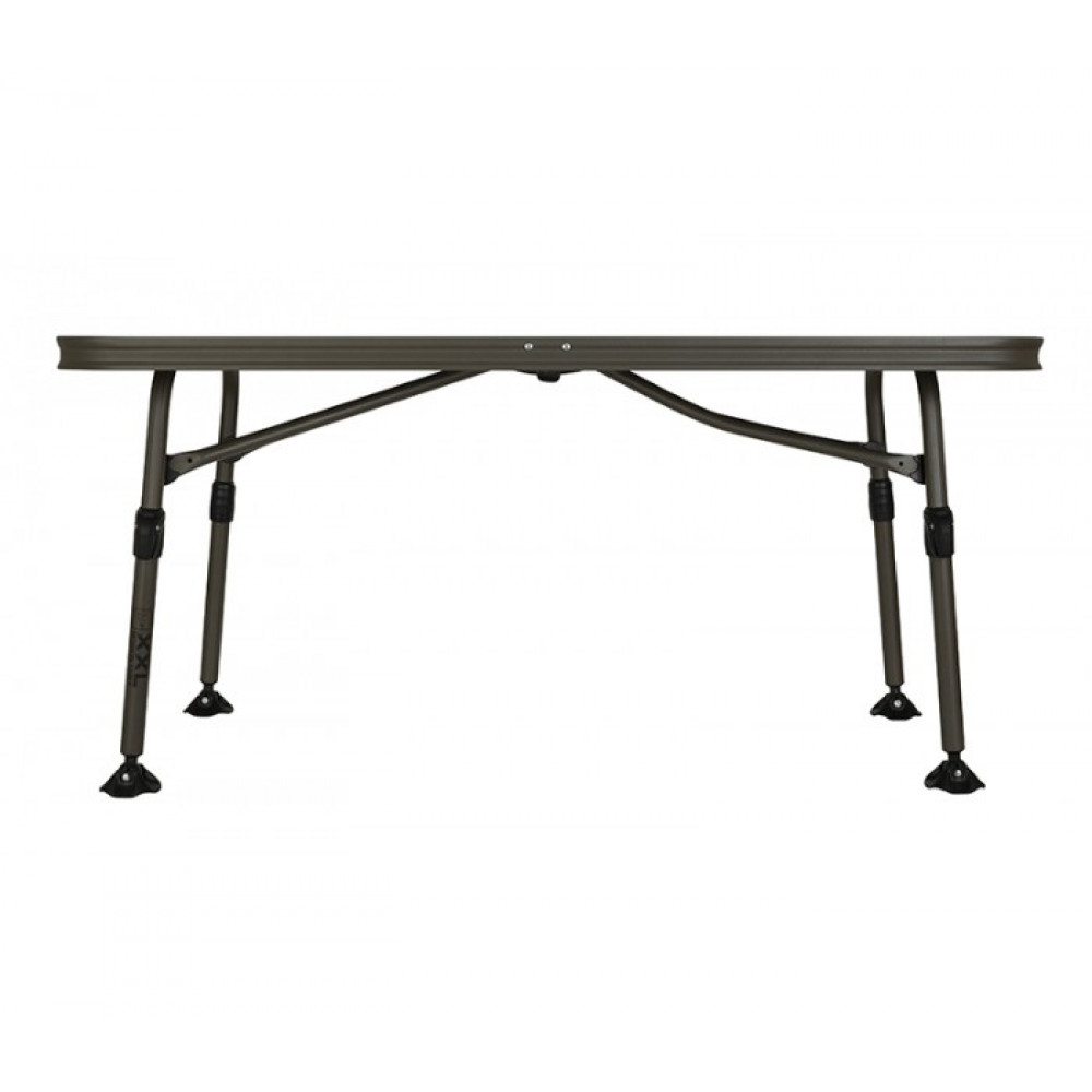 Къмпинг Маса Fox XXL Session Table е снабдена с четири индивидуално регулируеми крака. Височината на масата може да варира от 54.5 до 74.5 см. Разполага с пети на краката, които са предназначени за кални терени.