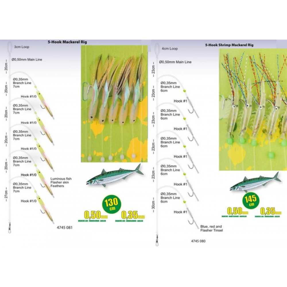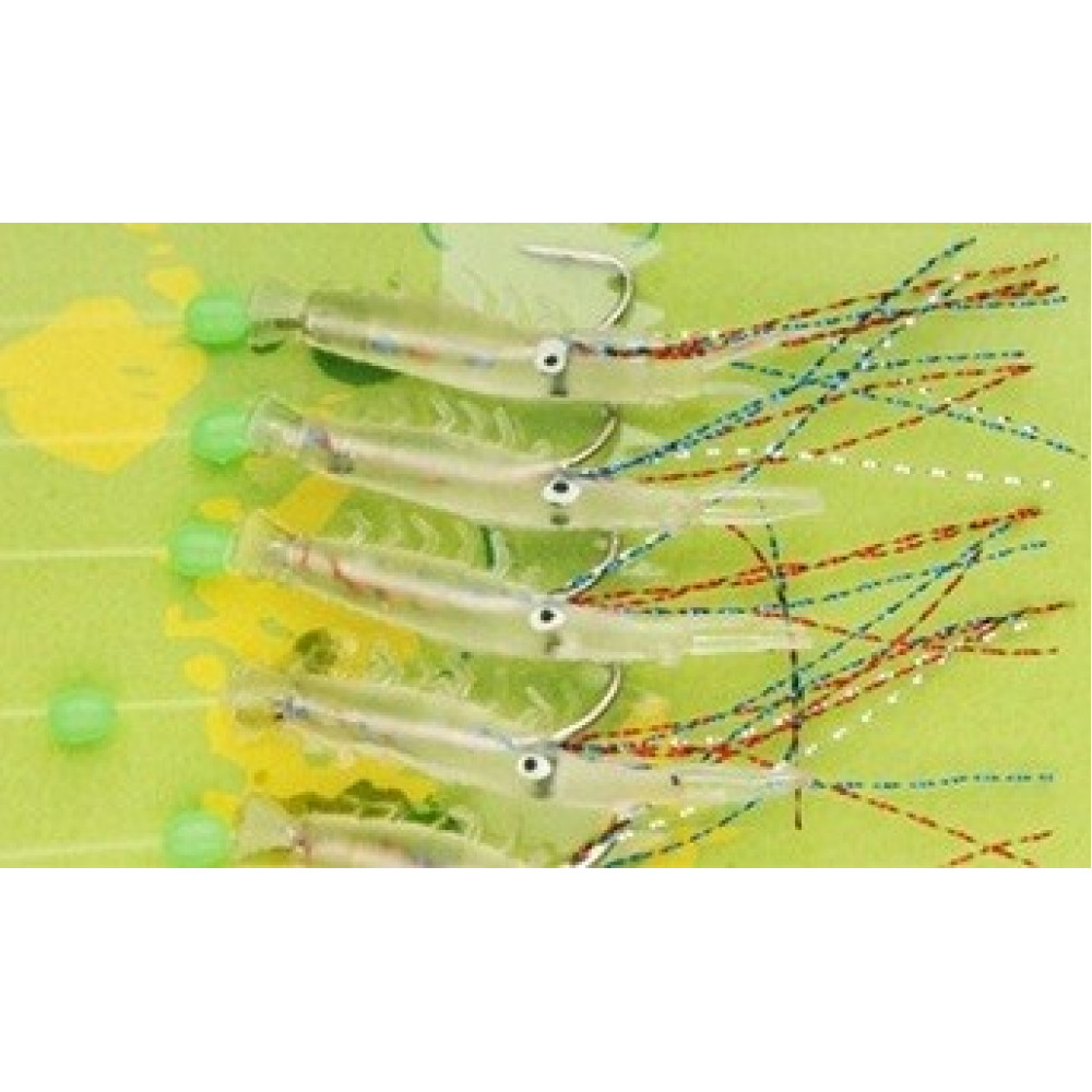 Монтаж за морски риболов Spro включва 5 скариди с куки N 1. По чепарето има и светещи орнаменти, подходящи за риболов през нощта. Подходящо за големи лавраци и паламуд.