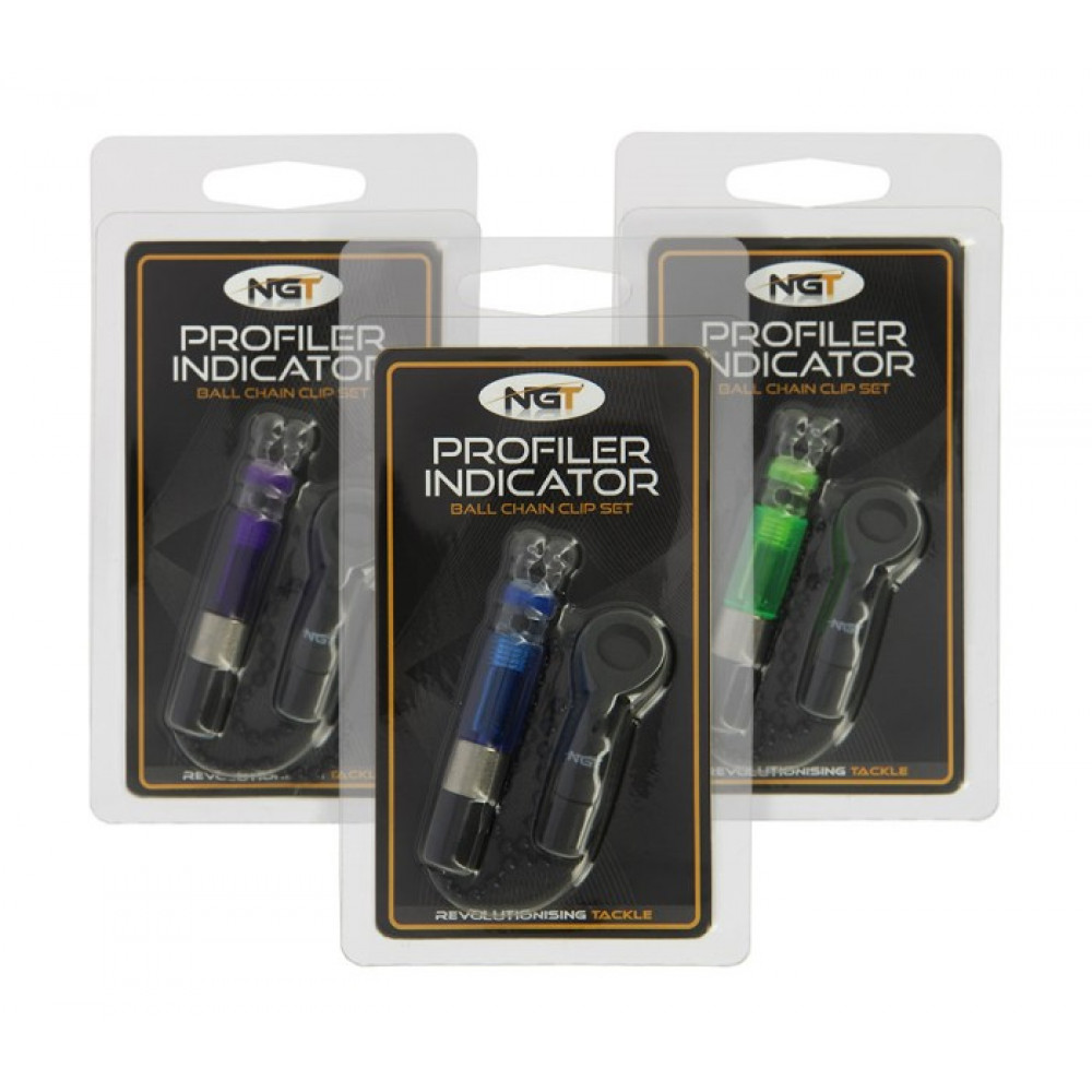 Новата гама Profiler идва с висококачествен индикатор, който се предлага в синьо, зелено и лилаво (всеки продаван отделно). Тези индикатори се отличават със закачалка hokey stick, черна 14 см верига и тегло 5 грама. Бобините могат да поберат малък 12 мм изотоп. Те са добър набор от индикатори, и са чудесно допълнение към сета на всеки шаранджия. Предлагат се в три цвята: зелен , син , и лилав.