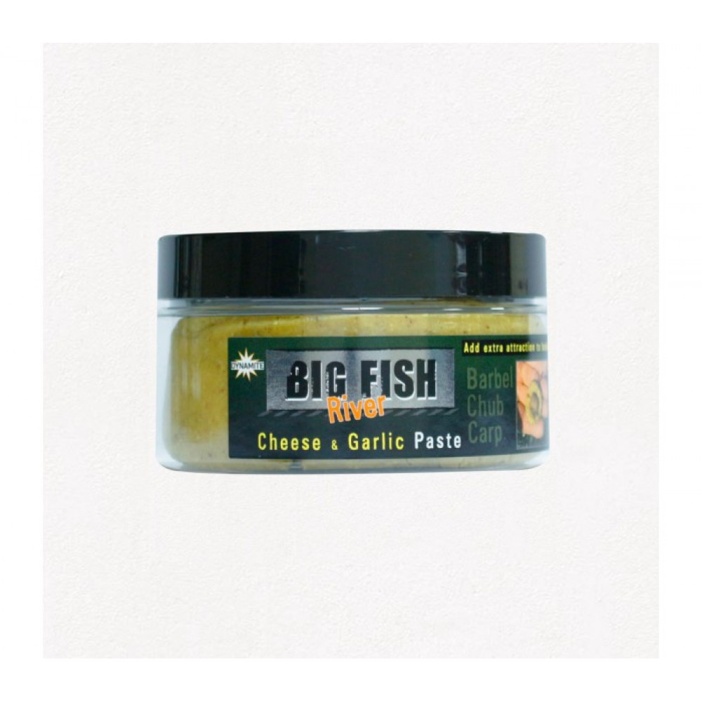 Dynamite Big Fish River Paste е фиброобразна паста за обвиване на стръв, тежести и фидер хранилки. Силно ароматизирана с аромат на Сирене и Чесън.