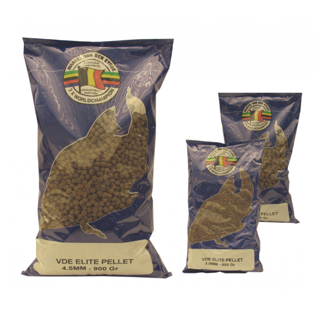 Пелети за риболов Marcel Van Den Eynde се предлагат в няколко варианта в зависимост от големината на пелетите и количеството пелети в една опаковка. Подходящи са, както за захранване при риболов на плувка, така и за основен компонент при риболов на метод фидер. Могат да се приготвят, както с пелет помпа, така и с цедилка. . Отличават се с високо съдържание на рибно брашно и към тях могат да се добавят всякакъв тип течни добавки(liquid), с цел да се повиши ефективността им.