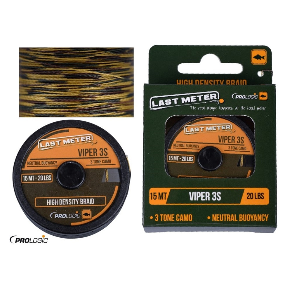 VIPER 3S представлява плетено влакно за поводи произведено от влакна с висока плътност, сплетени заедно със специално PE влакно, което е обработено със специално покритие против триене. Този процес прави VIPER 3S по-бързо потъващо и с много добра устойчивост на абразия. Тъй като не е прекалено мек, VIPER 3S е идеалното решение за риболов с дълги монтажи или във всяка ситуация, в която се нуждаете от дискретна презентация, която може да се справи с плевели и отломки на езерното дъно.
