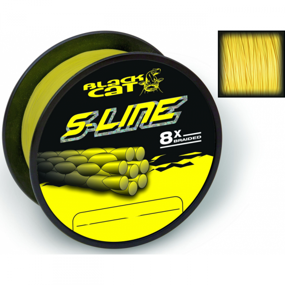 Плетено влакно 8 нишково с кръгло сечение- изключително здрава, плетена основна линия за всички аспекти на съвременния риболов на сом. S-Line впечатлява със своята много плътна оплетка, която не абсорбира почти никаква вода, съчетана с невероятна здравина, което прави линията перфектно проектирана. Жълтият цвят прави линията много лесно забележима в тъмното или,когато видимостта е лоша. S-Line беше тестван при най-суровите условия в съвременния риболов на сом от Stefan Seuß за 12 месеца и получи титлата 100% надеждна. Ярко жълт цвят за по-добра видимост на линията.