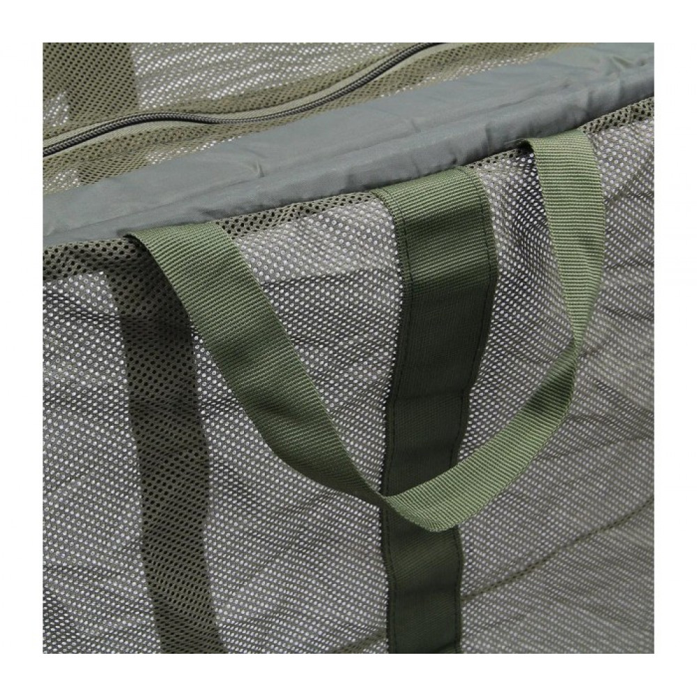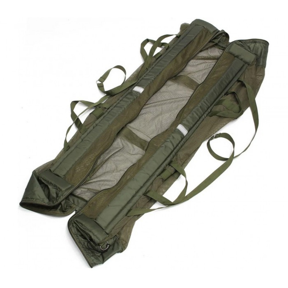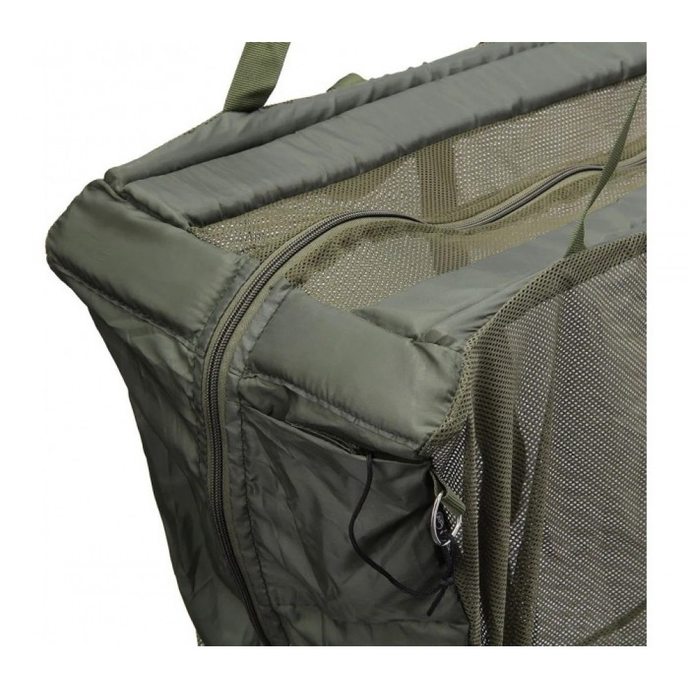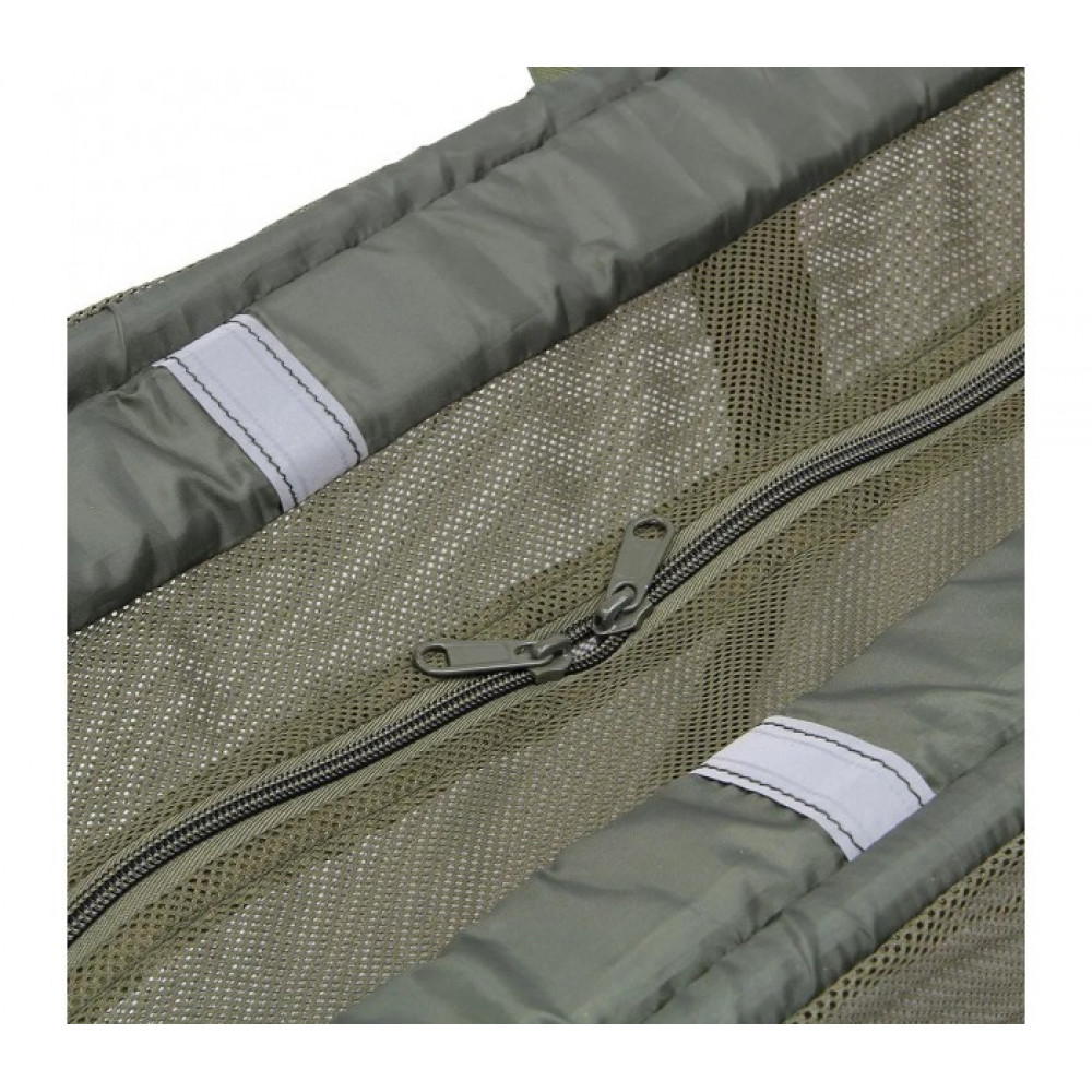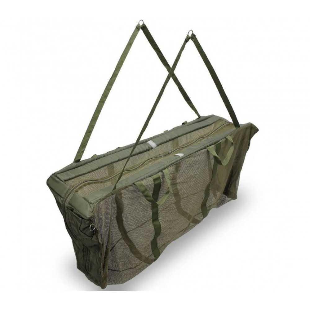 NGT F1 Flotation Sling and Retaining System with Case е плаващ карп сак за съхрнение и претегляне на уловените риби като едър шаран, амур или сом. Изработен от мекa, плътнa и същевременно здрава и надеждна материя, която осигурява максимална защита на рибите. Запазва надеждно улова за определен период от време, при което уловеният шаран трябва да чака за измерване или снимка. Мрежестите панели предпазват рибата от нараняване и осигуряват циркулация на водата с цел бързо възстановяване на рибата след улавяне. Ципът е двоен и много надежден, като е добавена и заключваща скоба за по-голяма сигурност. Продава се с полиестерен калъф.
