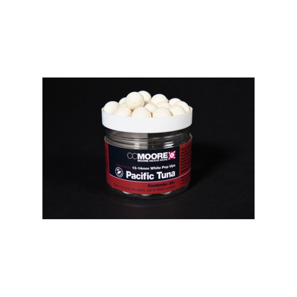 Pop-up топчета CCMoore Pacific Tuna White - едно изключително топче, усъвършенствано 3 години от екипа на CCMoore. Топчето е наситено бяло, съдържа разтворими рибни, млечни и растителни протеини с мощни стимуланти за апетит. Съдържа робин ред haiths, риба тон, миди и растителни екстракти.