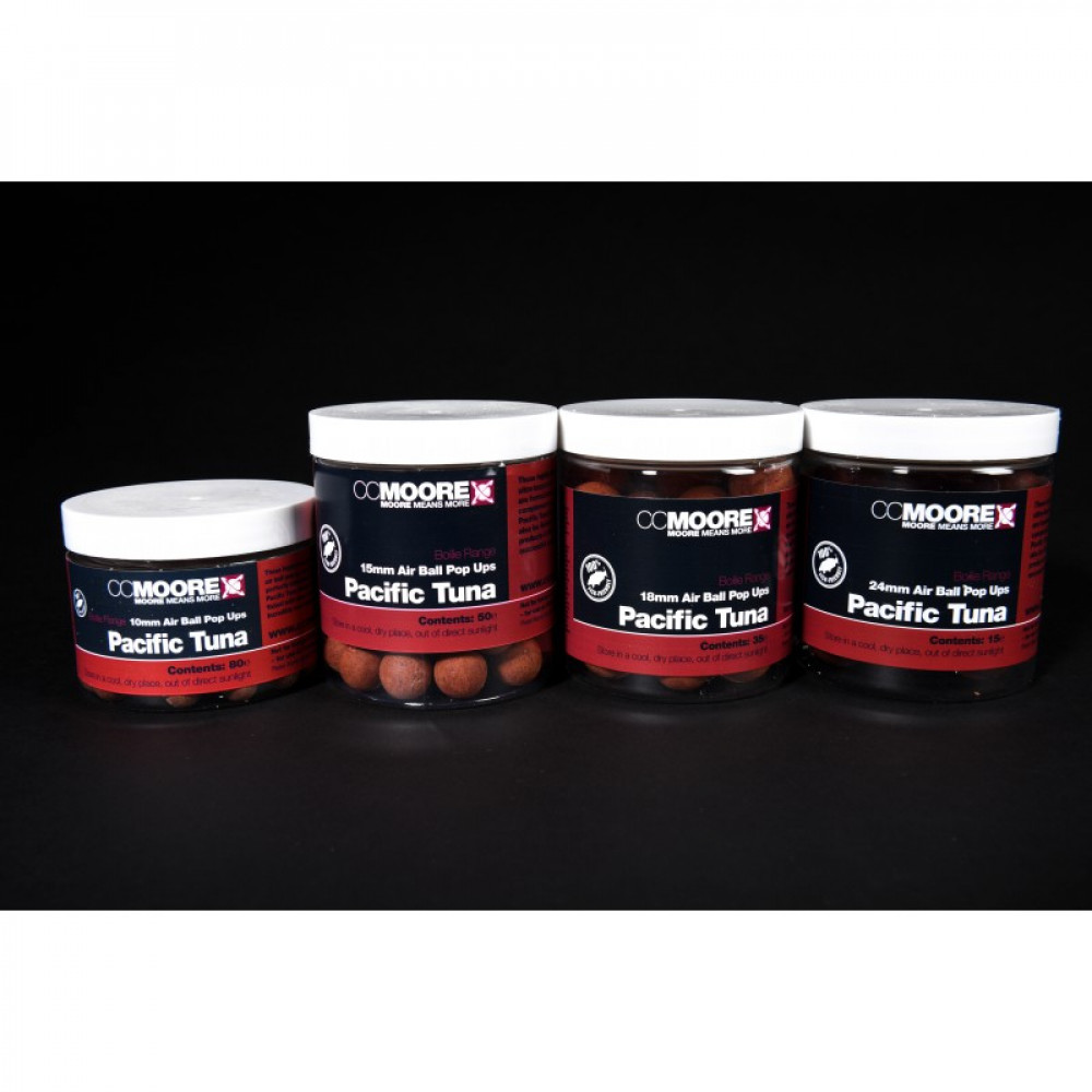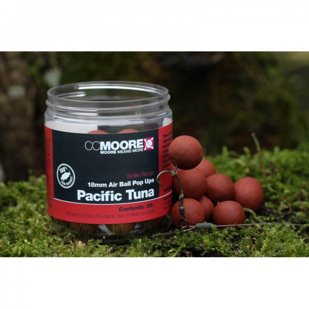 Pop-up топчета CCMoore Pacific Tuna - едно изключително топче, усъвършенствано 3 години от екипа на CCMoore. Топчето е наситено червено, съдържа разтворими рибни, млечни и растителни протеини с мощни стимуланти за апетит. Съдържа робин ред haiths, риба тон, миди и растителни екстракти.