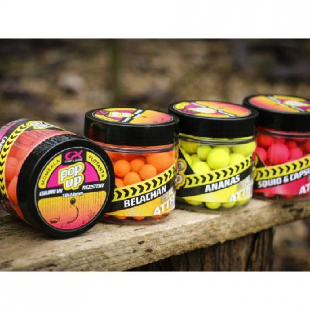Микс от поп-ъп топчета с дълготраен аромат и ярък флуоресцентен цвят. Могат да се ползват самостоятелно или да се комбинират с различни видове стръв - царевица, пелети или други топчета.CPK High Attract Pop-Ups са ослепително ярки, пълни със силни привличащи рибата аромати. Добрата им плаваемост дава възможност на риболовеца за чудесна презентация във водоеми с много обрасли дъна или закачки.