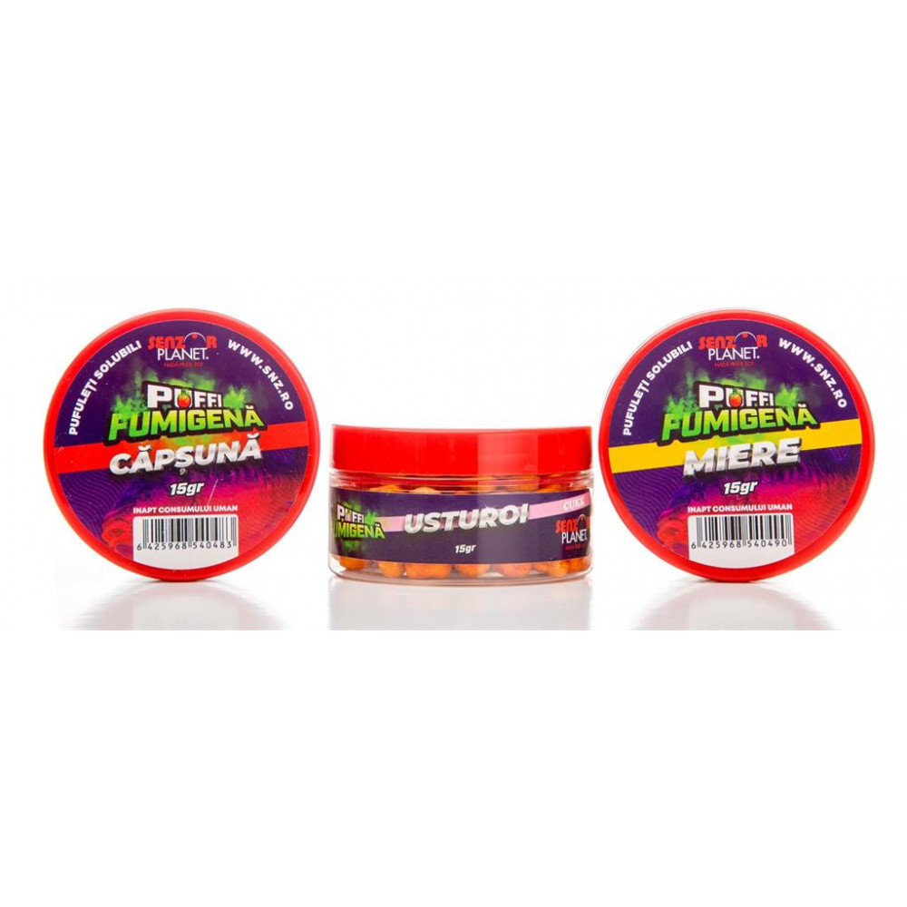 Полуразтворими пуфи с различни вкусове, цветове и размери, предназначени за риболов на мирни риби. Създават флуоресцентен облак веднага след влизане във водата.