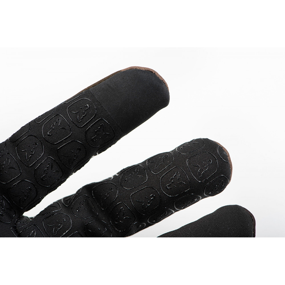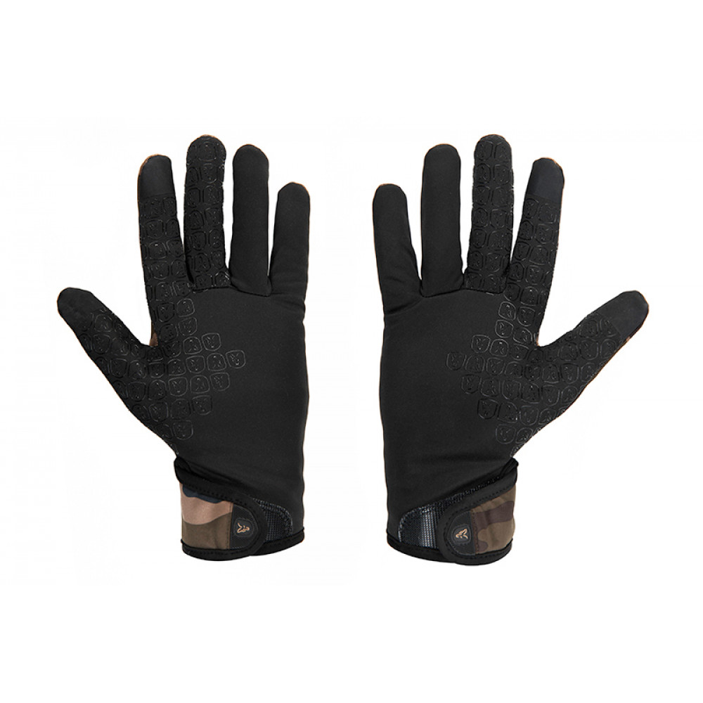Топли и удобни ръкавици от FOX в камуфлажен цвят, които осигуряват нужния комфорт по време на риболов и при необходимост позволяват работа със смарт телефон. Моделът притежава регулируеми ленти с велкро за корекция ширината на ръкавицата при китката, противохлъзгащ се силиконов принт, подплата от микро полар с мембрана и материал, които отблъскват вятъра и предлагат устойчивост на влага.
