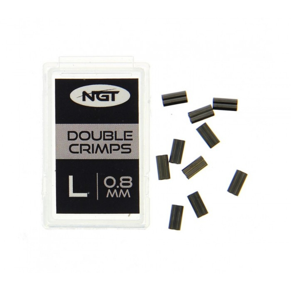 Двойни кримпове NGT Spare Crimps с черно покритие, чудесен избор за направа на здрави монтажи с монофилно влакно или флуорокарбон, които да не гонят подозрителните риби с излишен блясък.