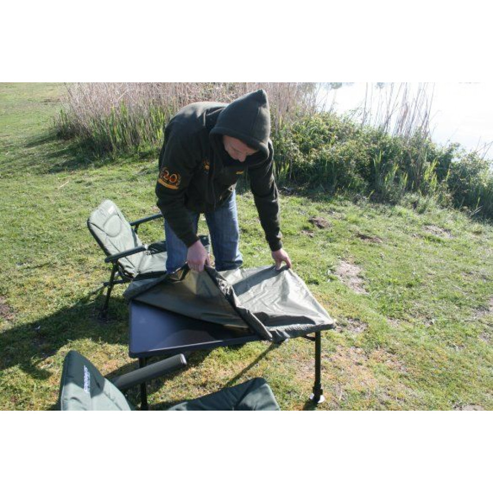 Голяма риболовна маса за бивак от френския шаранджийски специалист Starbaits. Стабилни телескопични крака с широки крака за предотвратяване на потъване върху меки повърхности. Висококачествената изработка гарантира дълъг експлоатационен живот! Безплатна транспортна чанта и предпазна опаковка против влага!
