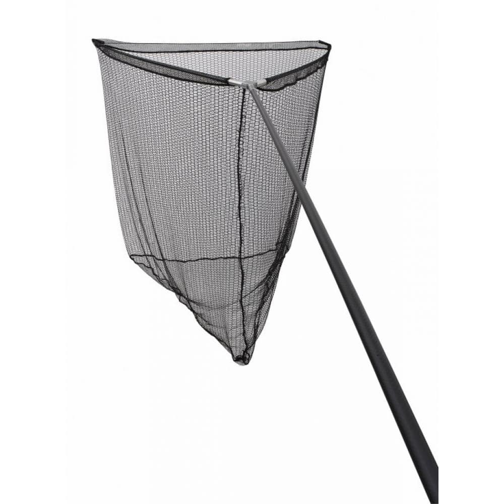 Тънка карбонова дръжка с полублестящи матови отенъци и алуминиев прецизен триъгълен накрайник, снабден с мека двойна мрежа, която предпазва и съхранява рибите.